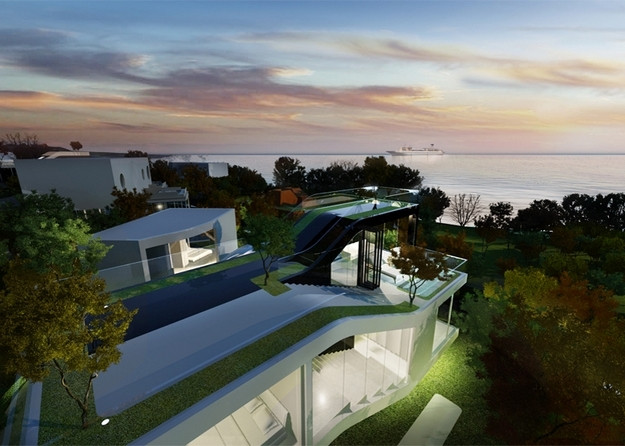Unul dintre aceste proiecte se numeste simplu "Cocoon House" si este inspirat din natura. Cladirea este formata din cateva componente. In centru se afla camera principala care are forma unui cocon de flutri, iar spre exterior sunt construite in stil minimalist alte cateva camere. Cladirea are vedere la mare si este amplasata pe unul dintre cele mai inalte puncte din zona.