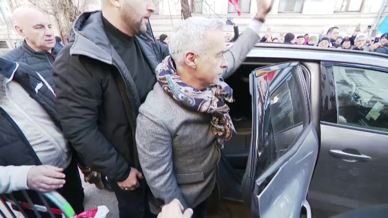 Călin Georgescu a părăsit sediul instanței protejat nu doar de gărzile sale de corp, ci și de câțiva susținătorI care au făcut un cordon în jurul lui până când a reușit să urce în mașină.
