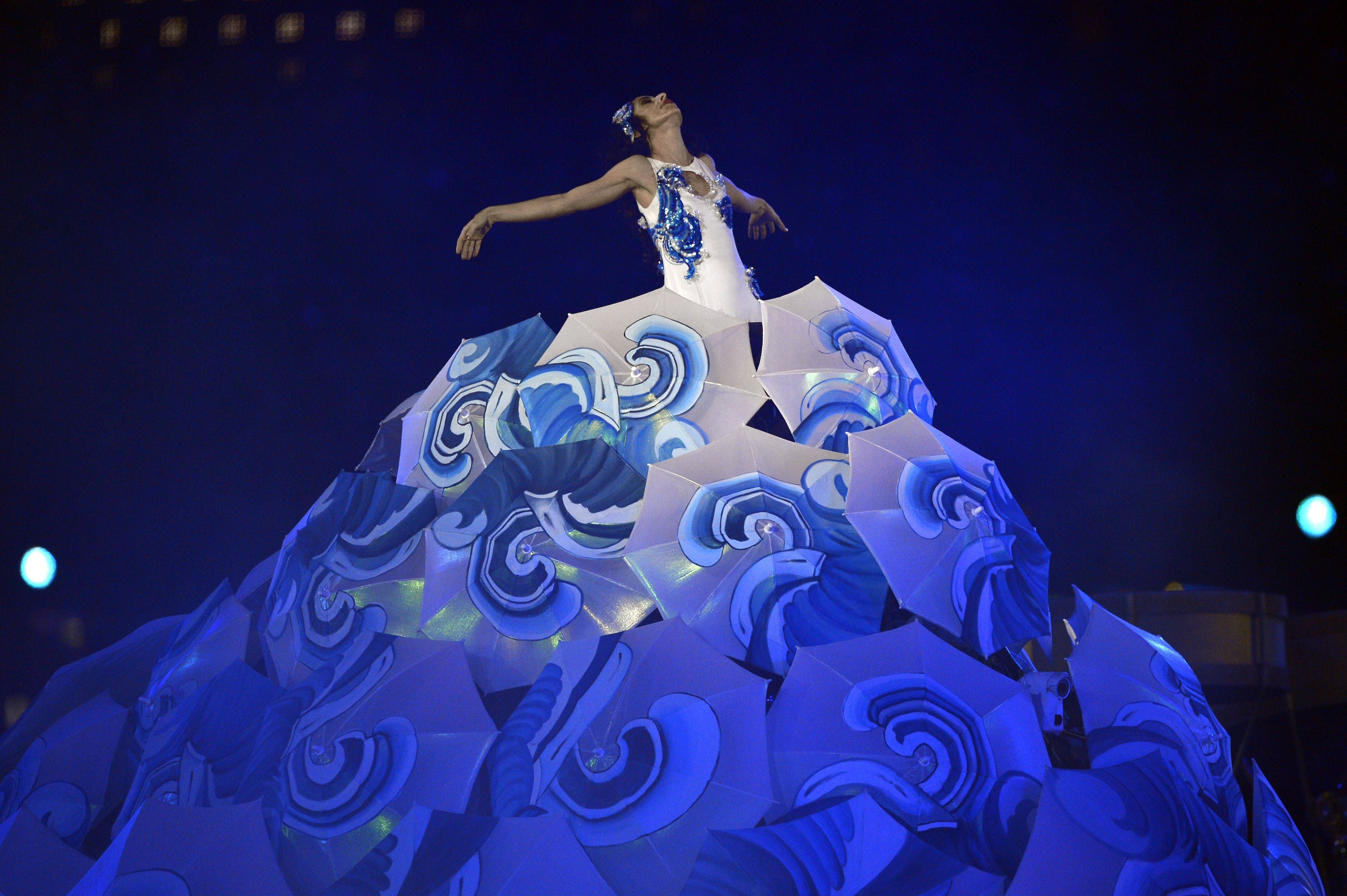 Timp de opt minute, dupa ce un celebru dansator brazilian, Renato Sorriso, si-a facut aparitia in centrul terenului deghizat intr-un maturator ce incearca sa invete un britanic sa danseze si o imensa zeita a apei a dat startul unui ritual de sarbatoare din padurea amazoniana, a avut loc un spectacol de muzica, samba si carnaval din Brazilia, cu mai multe personaje celebre - Pele, Alessandra Ambrosio, Seu Jorge, Marisa Monte, BNegao - la final, aparand intr-o explozie de culori si lumina logoul Jocurilor Olimpice de la Rio.