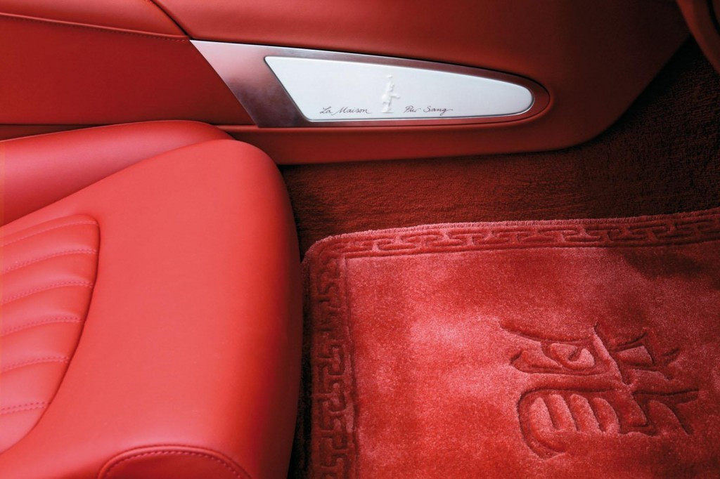 Producatorul a presarat atat in tapiterie cat si in caroserie elemente care sa aminteasca acest lucru. De altfel, stemele care se regasesc in capacele de la roti sunt realizate din ceramica si reprezinta colaborarea dintre Bugatti si Konigliche Porzellan Manufaktur.