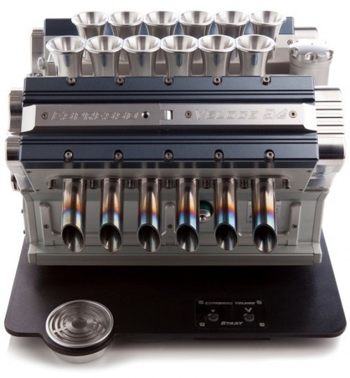 De cateva lucruri are nevoie un barbat pe lumea asta ca sa fie fericit. Masinile si cafeaua se numara printre ele, asa ca era doar o problema de timp pana sa vedem inventia asta. Italienii s-au gandit ca ar fi cool sa poti bea cafea dintr-un…motor V12.