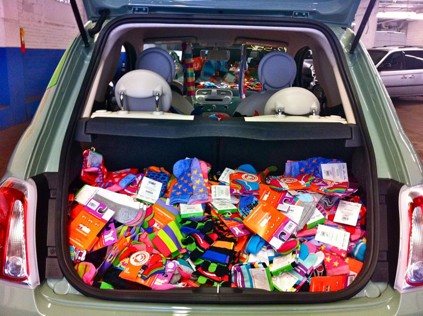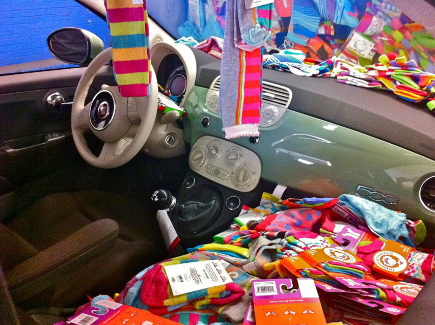 LittleMissMatched este un magazin din SUA care la 3.333 de sosete cumparate iti da gratis un…Fiat 500! Desi pare o targuiala ieftina, “perechile” de cate trei sosete diferite costa 15.000$.