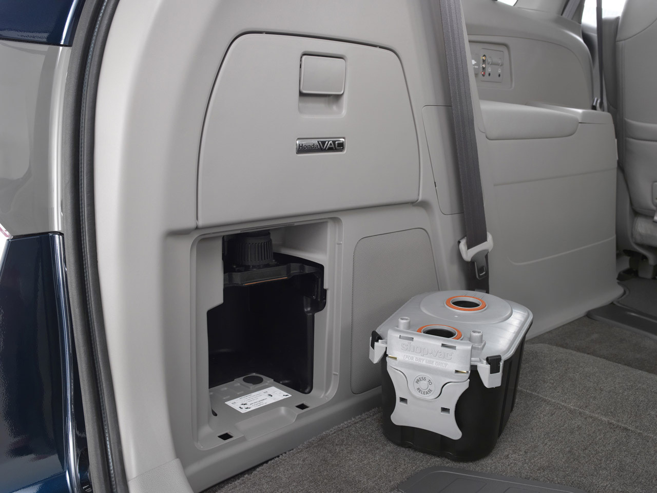 Aspiratorul se numeste HondaVAC si ii poti pune o gramada de accesorii. Familiile cu copii mici sau animale stiu prea bine ce dezastru lasa cei mici in masina. Aspiratorul e integrat in portbajag si e destul de lung incat sa ajunga pana la scaunele din fata. Nu are baterii si poate functiona neintrerupt inca 8 minute dupa ce motorul MPV-ului s-a oprit. Dar impune totusi o intrebare: cine face curat? Tu sau partenera?