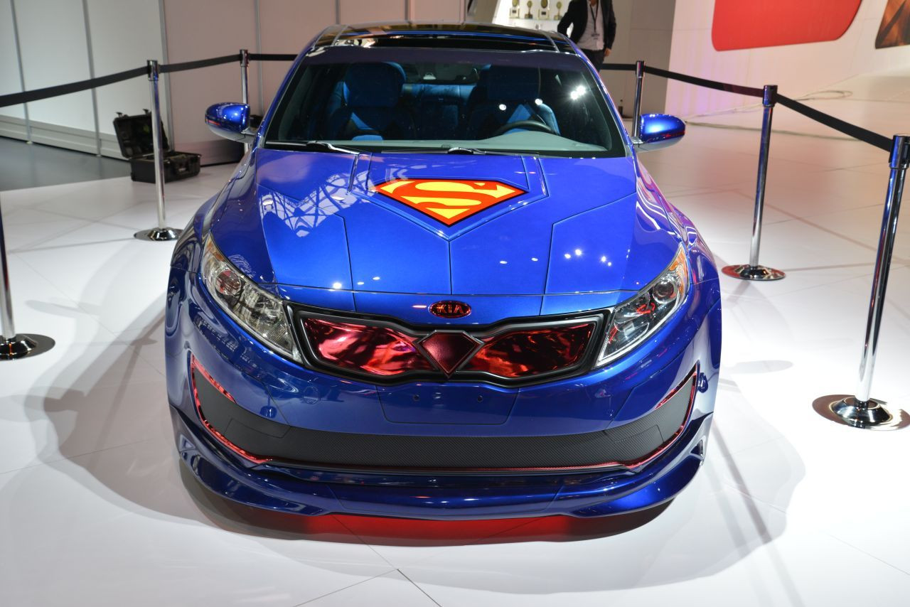 Kia si creatorii de benzi desenate DC Enternainment au lansat masina care l-ar face pe Batman sa-si planga in pumni de invidie. Pentru ca asta e masina lui Superman! E de fapt o Kia Optima Hybrid, prezentata la Salonul Auto de la Chicago.