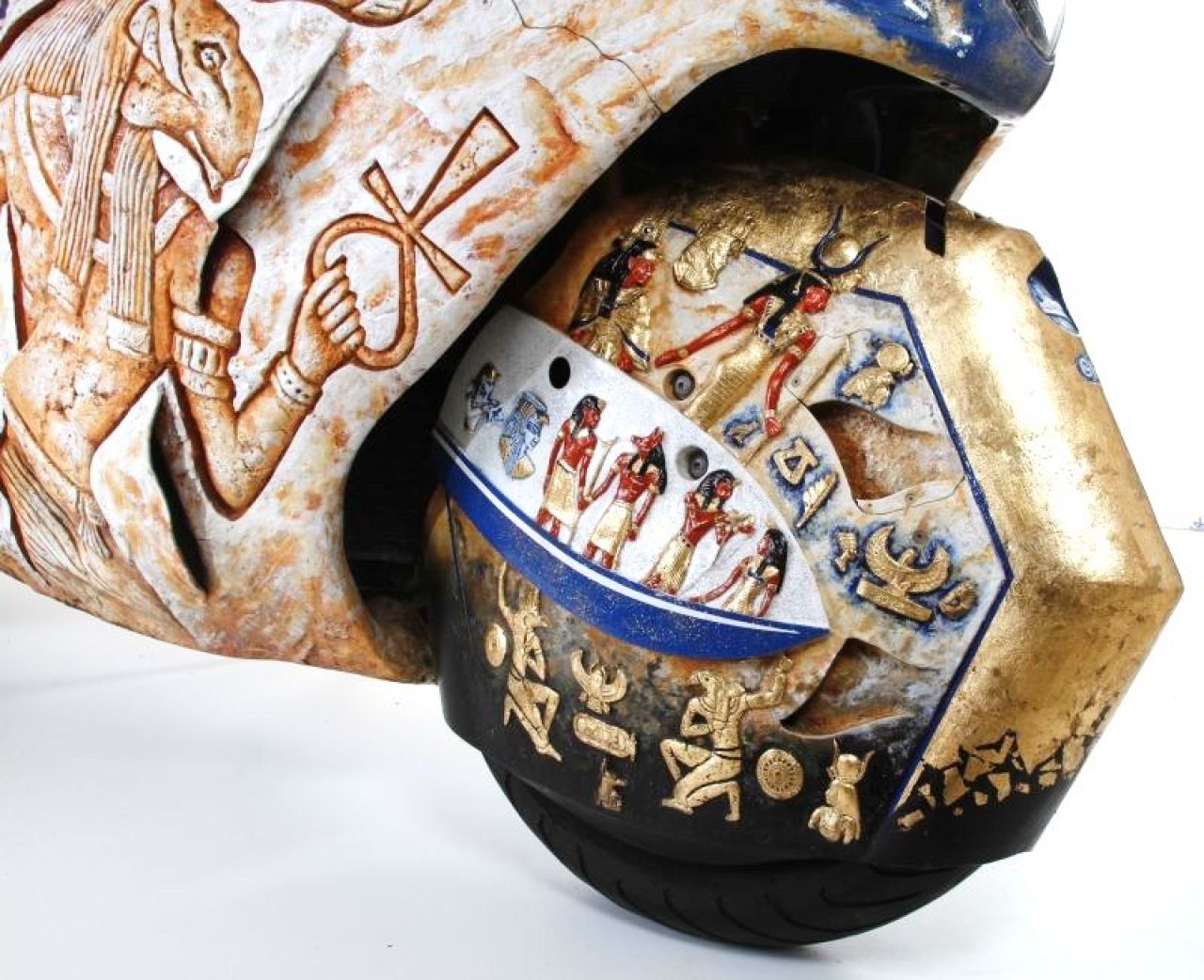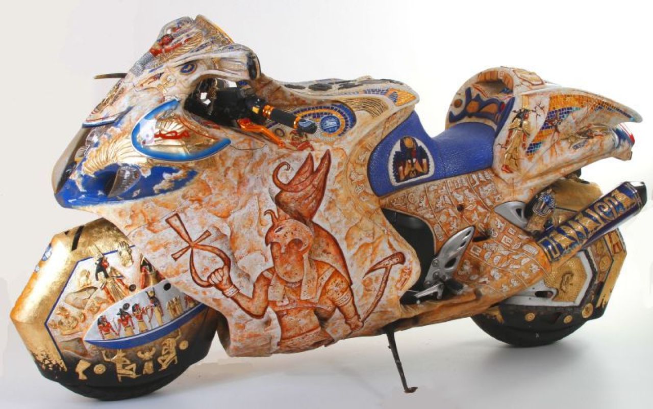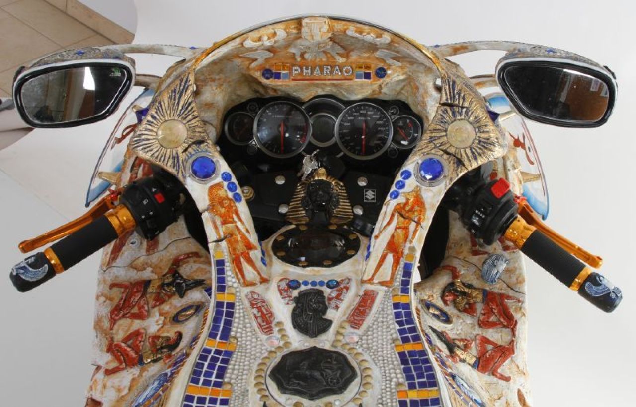 Georg Ehrschwendner e un designer austriac, putin sarit de pe fix. A dezvoltat o adevarata obsesie pentru tot felul de pietre si civilizatia egipteana. Din toate astea s-a nascut Hayabusa Pharao, o motocicleta custom, creata dupa chipul si asemanarea faraonilor din antichitate.