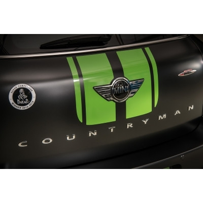 John Cooper Work s-a ocupat in detaliu si de partea de design. Semnatura pilotului de raliuri apare pe masina alaturi de logo-ul Dakar. Exteriorul vopsit in negru mat contrasteaza energic cu dungile racing de culoare verde fosforescent, aceeasi pe care a purtat-o si masina lui Peterhansel in lupta cu dunele din desert. Mai mult, cele 11 modele vor avea portierele inscriptionate cu numarul de concurs al pilotului, 302. Agresivitatea de masina de raliu e temperata putin de proiectoarele montate in spoiler si de rotile de 19”.