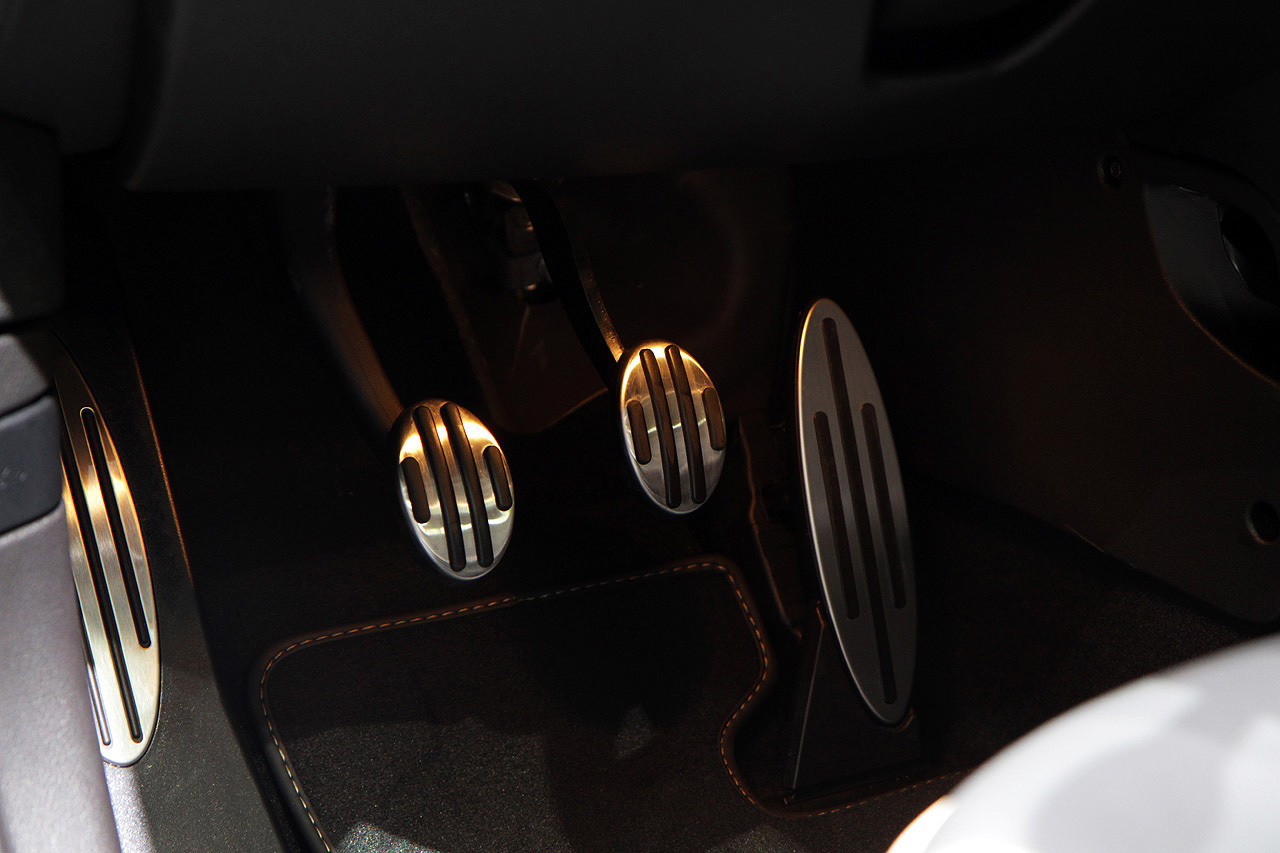 Palenta de culori e o combinatie unica intre negru si culoarea sampaniei, care se regaseste atat la exterior cat si in interior. Versiunea creata special pentru Salonul Auto de la Geneva foloseste nuanta Cool Champagne pentru capacele oglinzilor, pe montanti, plafon sau pe dungile de pe capota. Pana si jantele din aliaj de 17” se disting prin negrul Midnight Black Mettalic, completat discret la exterior cu aceasta culoare. Acelasi lucru e valabil si pentru finisajele de pe spoilere.