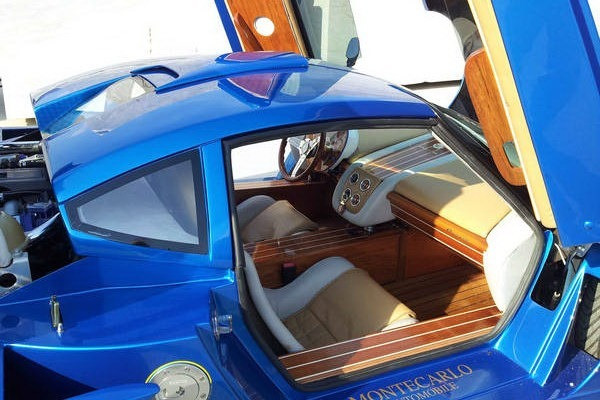 Exteriorul se inspira din clasicele Ferrari F40 sau Enzo, dar adevaratul lux e acolo unde conteaza: la interior. Insertiile din lemn lucios, piele si ornamentele metalice iti dau impresia unui iaht luxos, iar plafonul detasabil ar fi perfect pentru drumurile insorite din Monaco.