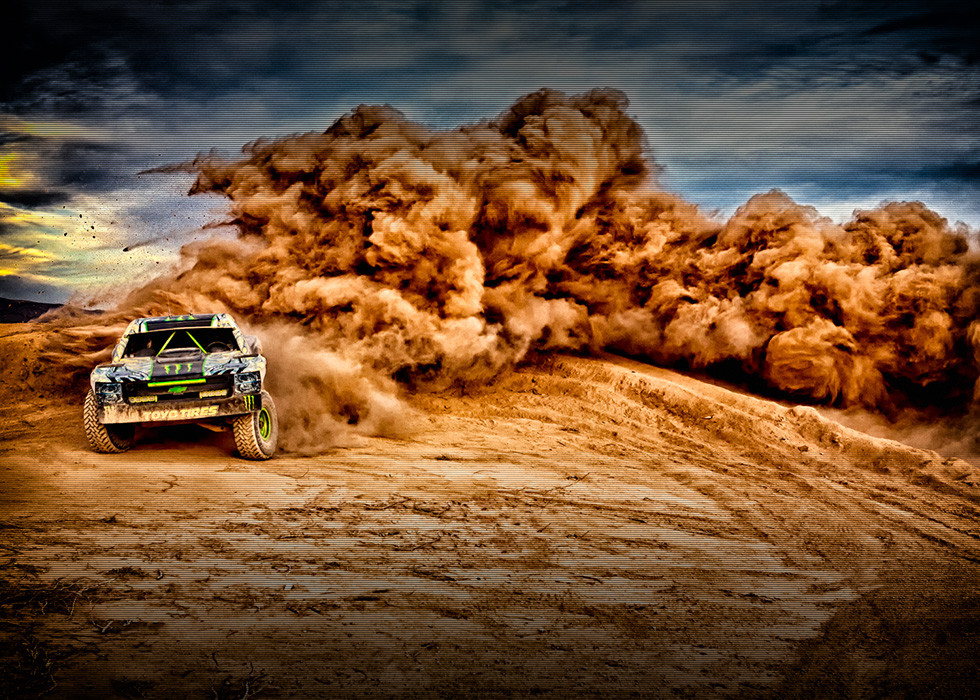 Monstrul de mai sus face parte din clasa Trophy Trucks si inghite 75 de litri la suta de kilometri! Are un motor Chevrolet V8 de 850 CP si 935 Nm. Suspensia e absolut criminala: are o cursa de 860 mm, care nu-ti da nici cea mai mica bataie de cap in offroad