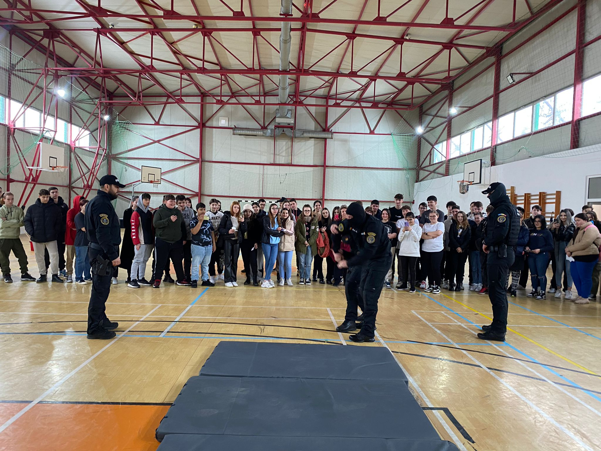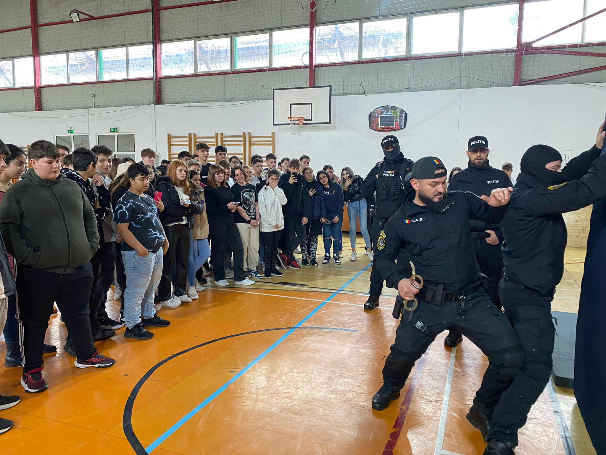 La această activitate toti elevii claselor IX-XII au participat activ la această demonstrație, prilej în care li s-a prezentat activitatea Poliției, cu scopul de a le capta interesul și de a fi în viitor noii colegi ai oamenilor în uniformă.