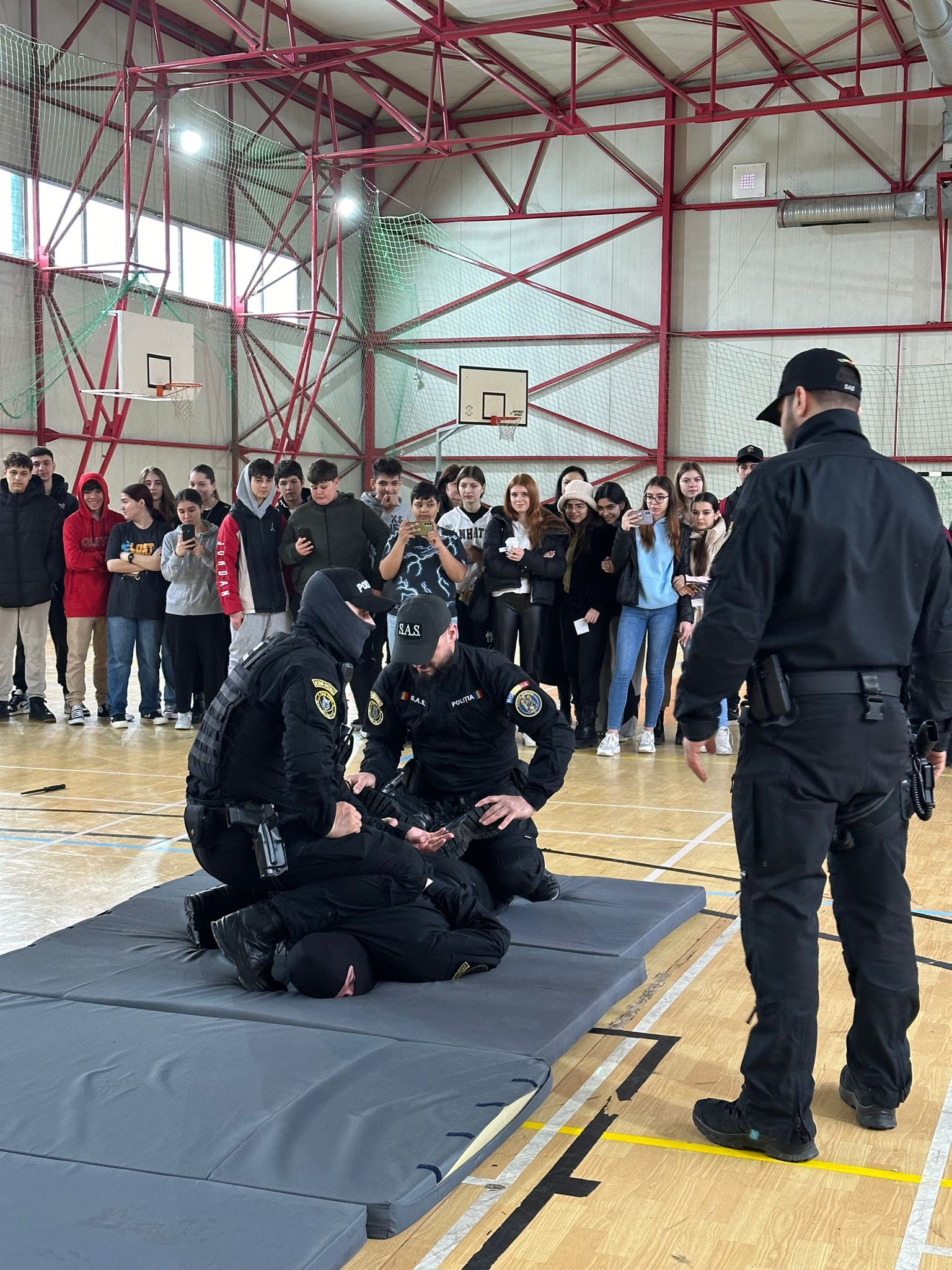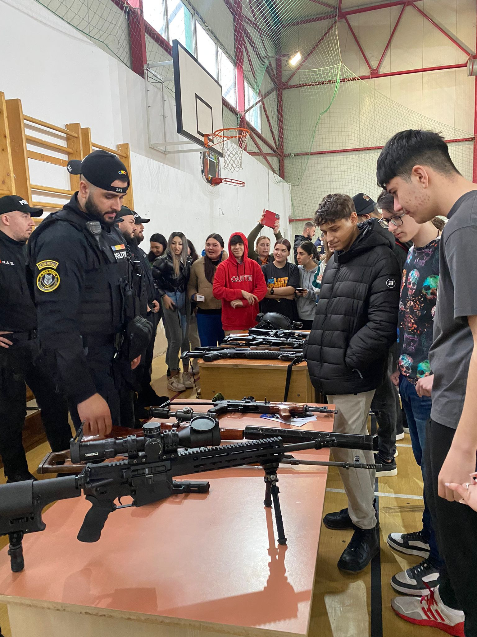 Serviciul Acțiuni Speciale a expus dotările pe care le dețin și a prezentat individual fiecare armă în parte, desfășurând chiar și o demonstrație de încătușare și cateva procedee de autoapărare, domeniu ce a trezit interesul și entuziasmul liceenilor.