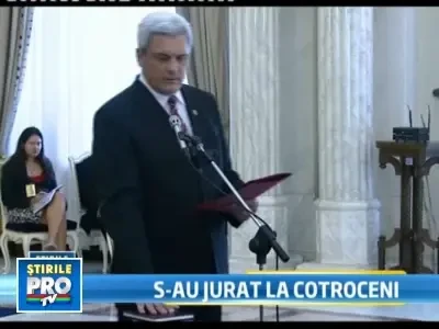 UPDATE: Cei sase noi membri ai Executivului au depus juramantul in fata presedintelui Traian Basescu. La scurta ceremonie de la Palatul Cotroceni nu s-au ciocnit pahare de sampanie, insa seful statului a dat multe sfaturi.