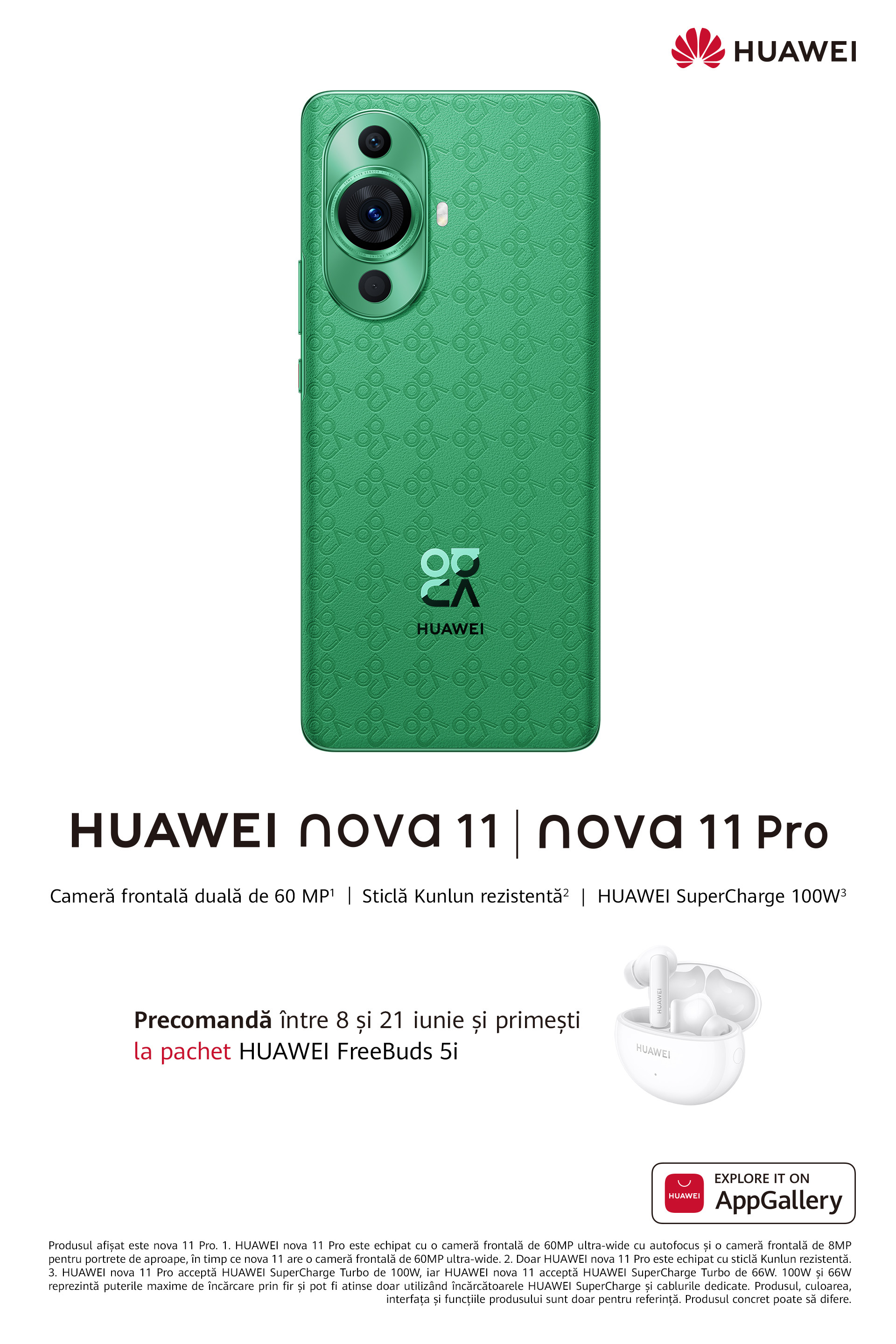 Peste 500 de milioane de utilizatori HUAWEI folosesc deja zilnic AppGallery, cel de-al treilea ecosistem de magazin online din lume. Cu peste 200 de mii de oferte sunt disponibile în AppGallery, posesorii de Nova11 se pot bucura în siguranță de un sistem avansat de protecție și verificare a datelor în 4 etape, cu verificare a recenziilor și a dezvoltatorilor de aplicații. Pentru că HUAWEI pune pe primul loc relația cu clienții săi, în AppGallery se găsesc numeroase oferte și vouchere promoționale la serviciile oferite de aplicații, spre exemplu coduri de discount la aplicații de taxi.