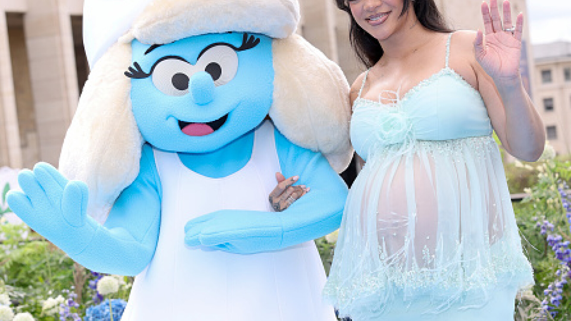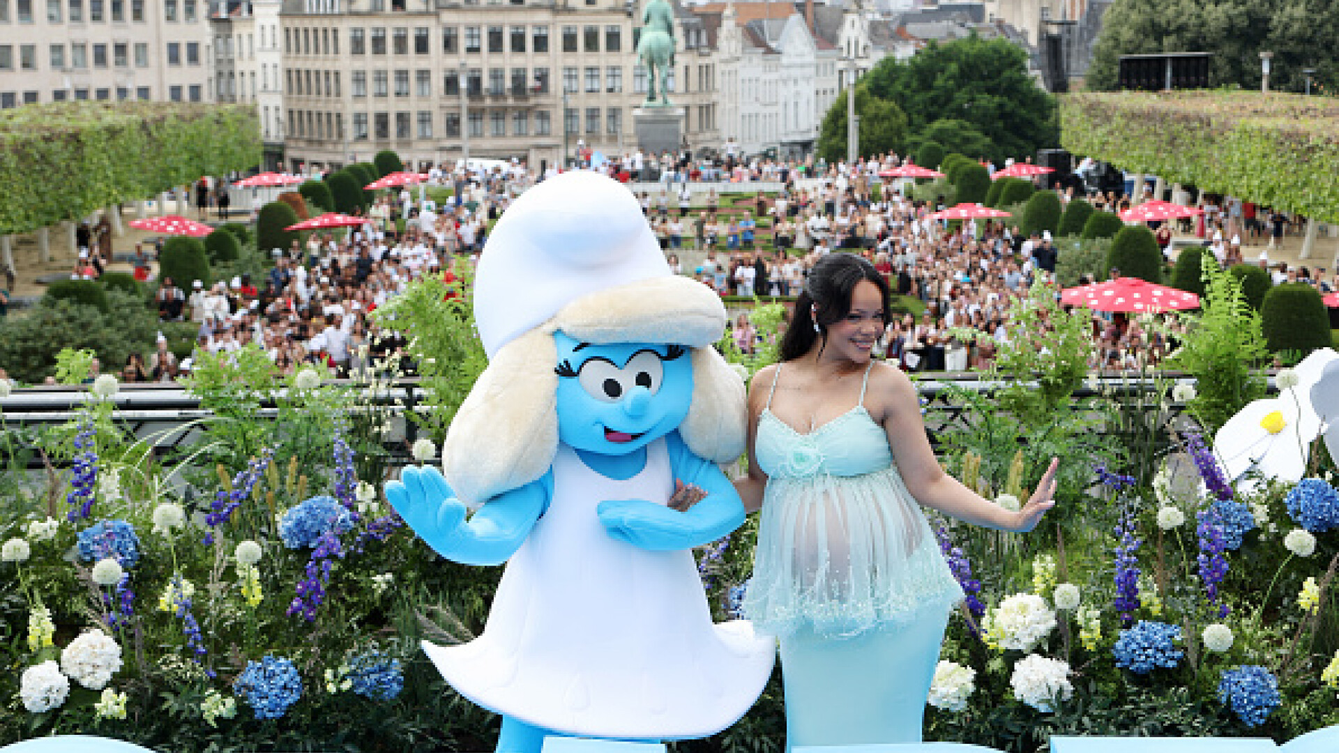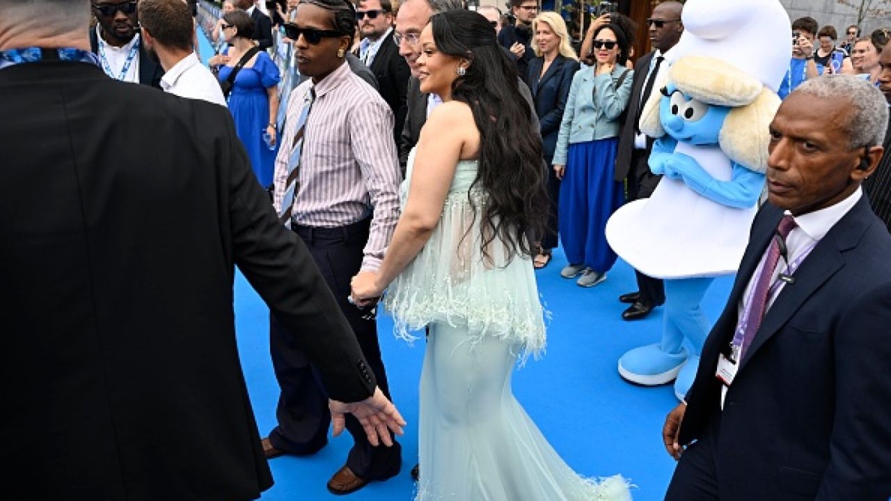 Rihanna joacă rolul Smurfette în cel mai recent film cu Strumfi, care a avut premiera mondială în Belgia, duminică. A$AP Rocky a fost prezent alături de ea, în drumul lor spre Mont des Arts, Bruxelles.
