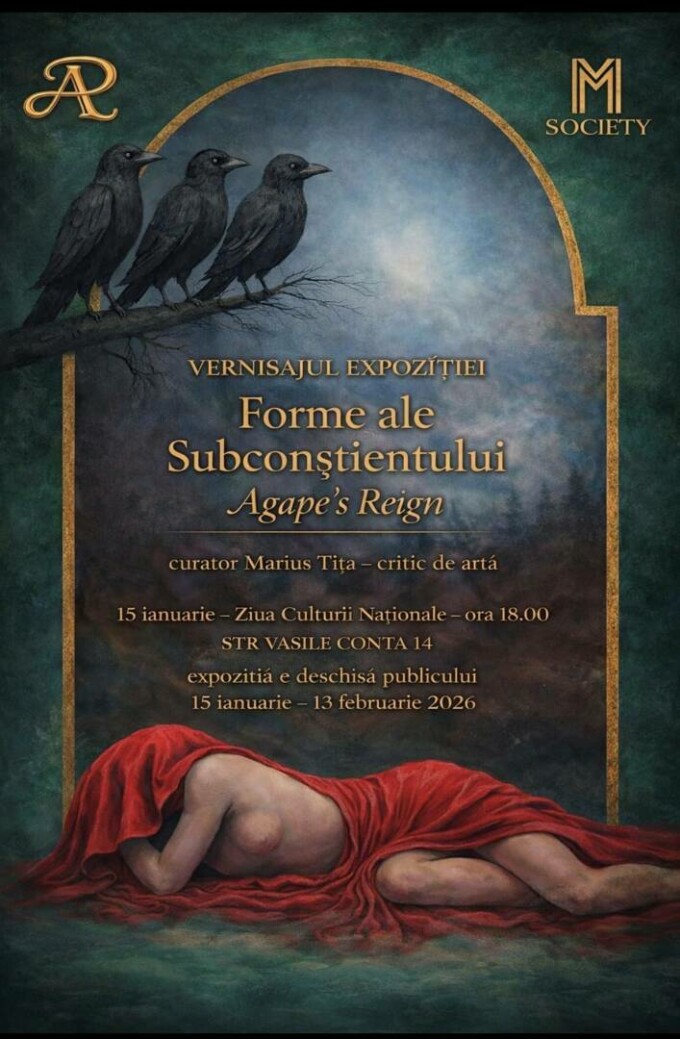 Artista Rebeca Dumitru, cunoscută sub pseudonimul ”Agape’s Reign”, revine în atenția publicului cu o nouă expoziție care va fi vernisată pe 15 ianuarie 2026, de Ziua Culturii Naționale, în spațiul expozițional M Society din București.