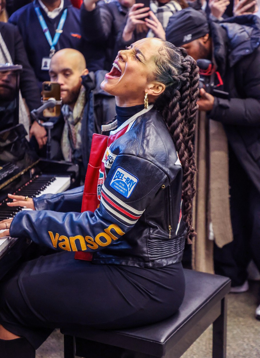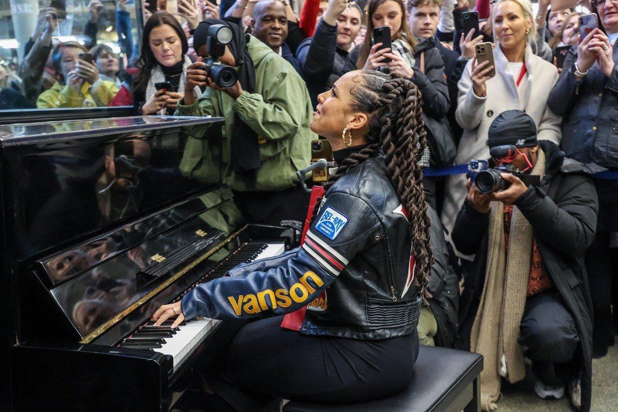 Alicia Keys a cântat la pian circa zece minute, timp în care numeroşi călători au făcut fotografii şi înregistrări video cu artista americană.