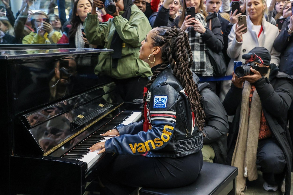Cantautoarea americană Alicia Keys a susţinut luni un recital-surpriză într-una dintre cele mai mari gări din Londra, interpretând mai multe melodii la un pian negru, donat mai demult acestei clădiri de Elton John, informează Reuters.