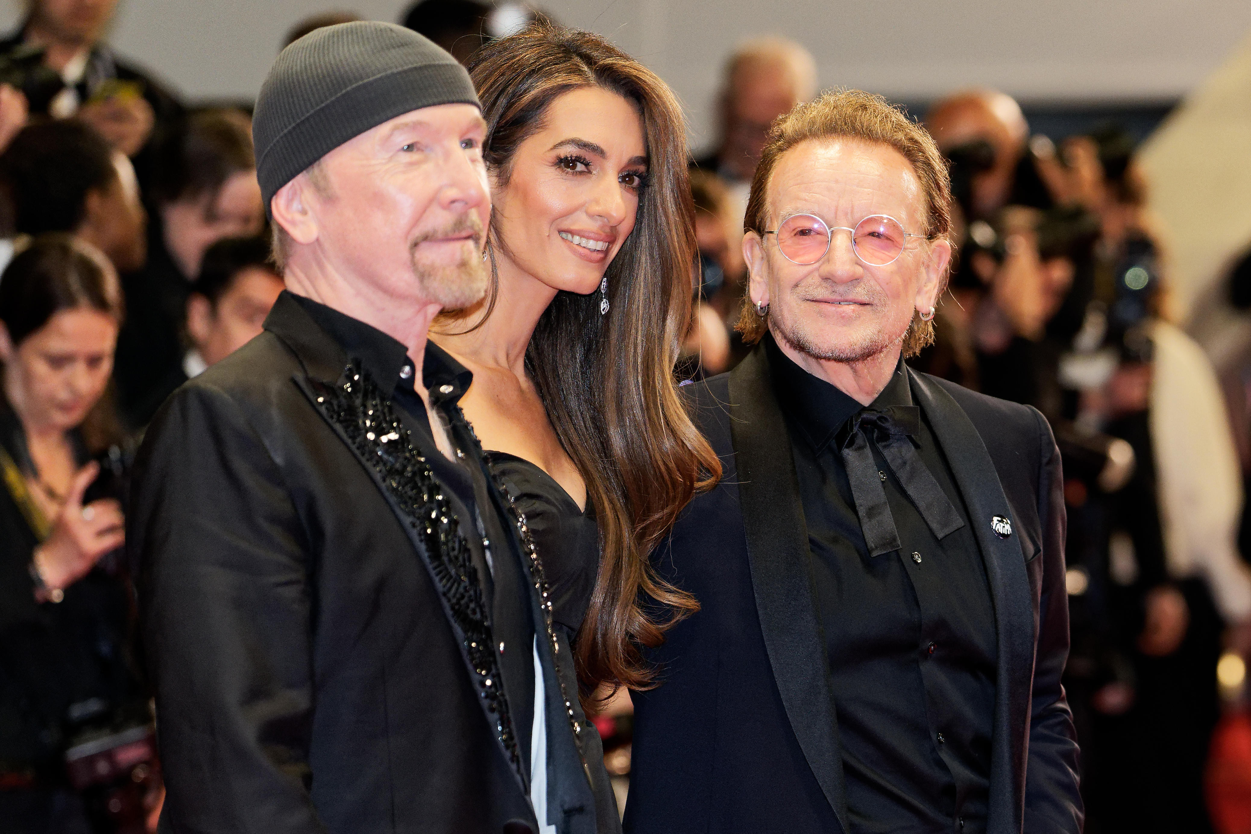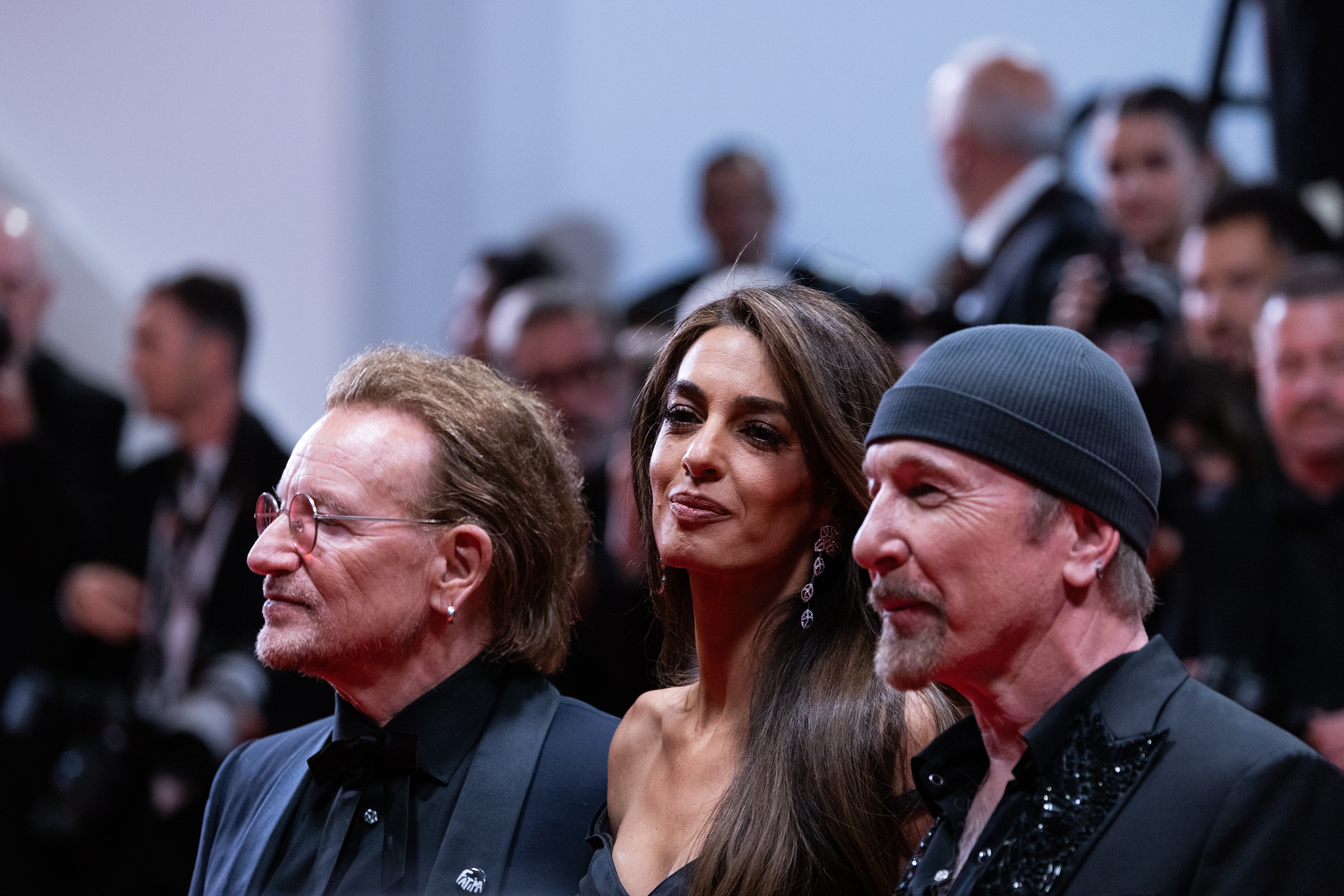 Amal Clooney, apariție plină de eleganță la cină alături de George Clooney, Bono și soția lui. FOTO