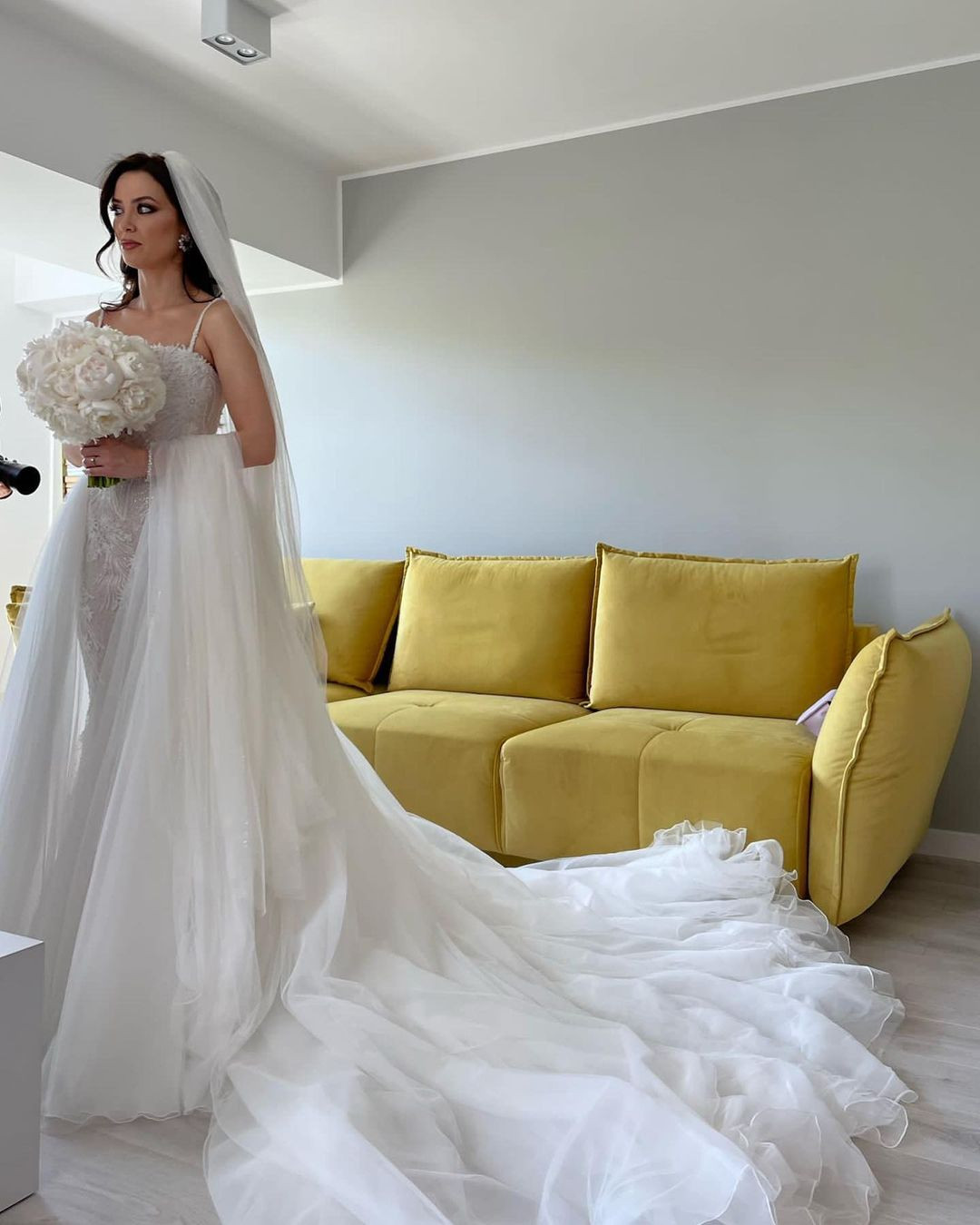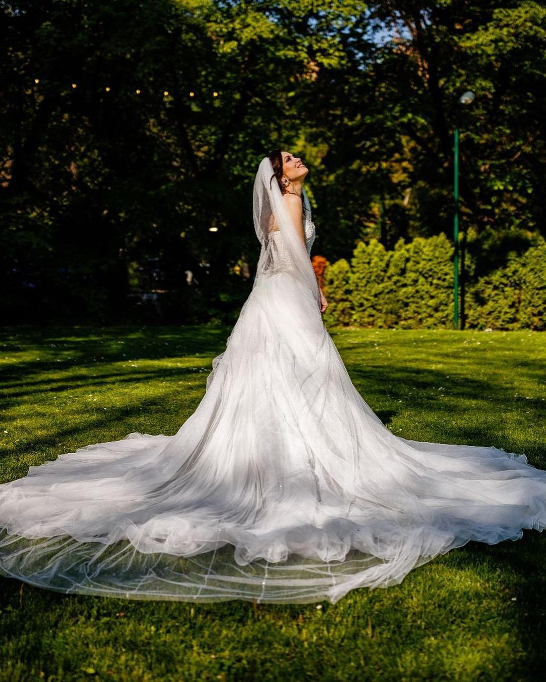 Actrița a avut parte de o nuntă ca în povești, iar ea a arătat superb într-o rochie tip sirenă, cu broderii și voal.