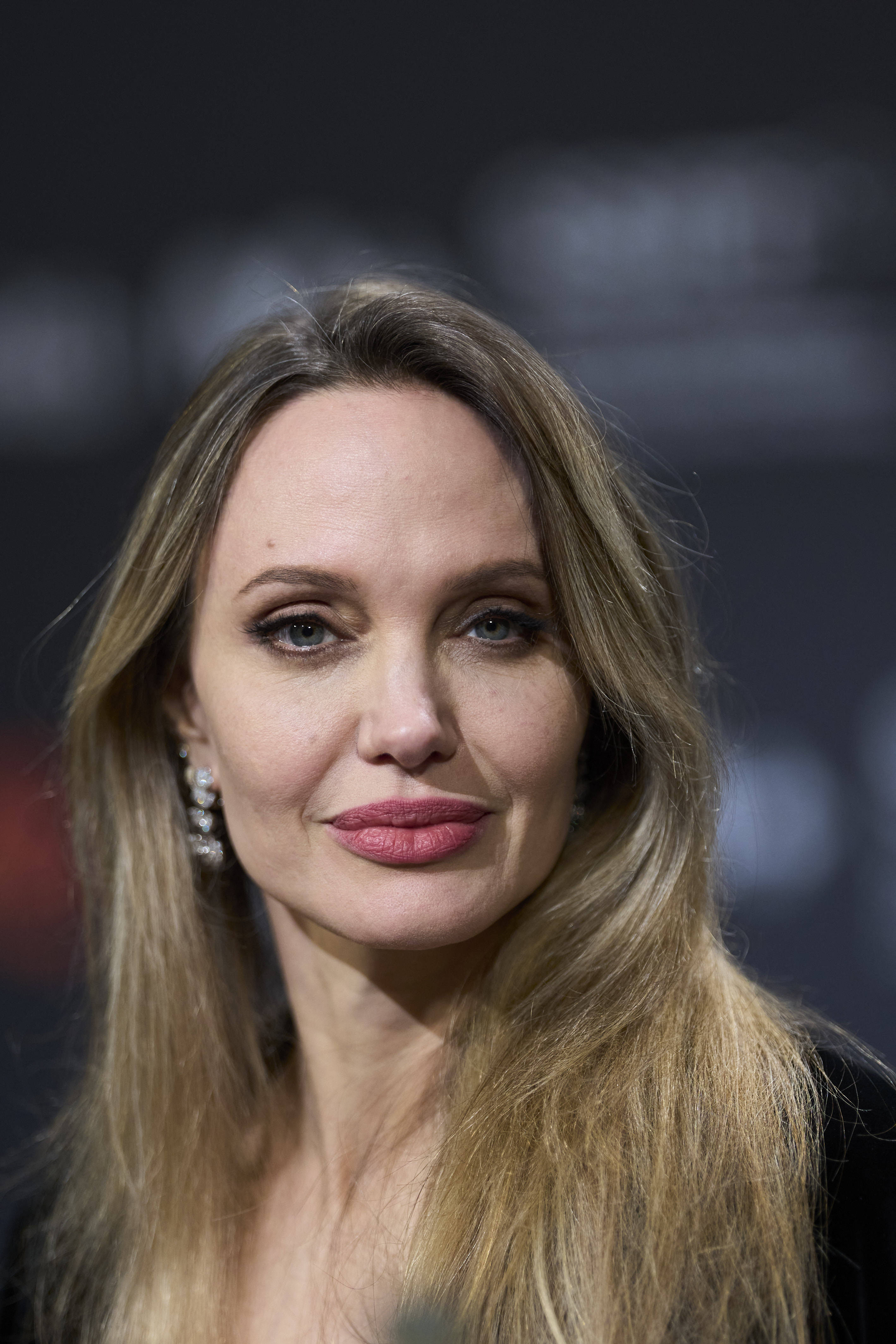 Angelina și-a completat look-ul cu o pereche de pantofi cu toc înalt și cercei lungi, strălucitori.