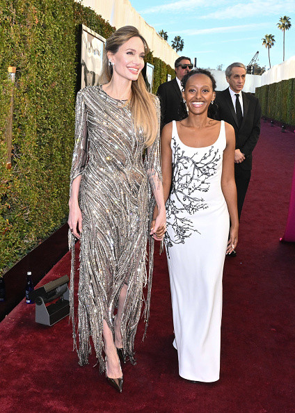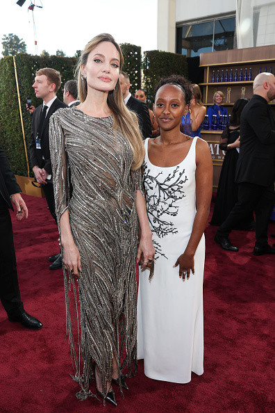 Fiica Angelinei, Zahara, s-a îmbrăcat și ea special pentru acest eveniment, purtând o rochie albă, fără mâneci, susținută de bretele groase care i se așezau pe umeri. Pe partea dreaptă a rochiei erau brodate modele negre, asemănătoare crengilor de copac, pentru un efect unic. Tânăra de 19 ani a optat pentru accesorii minimale, pentru a lăsa rochia să fie piesa centrală, iar părul i-a fost prins într-un coc elegant.