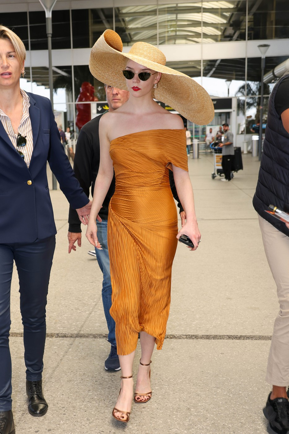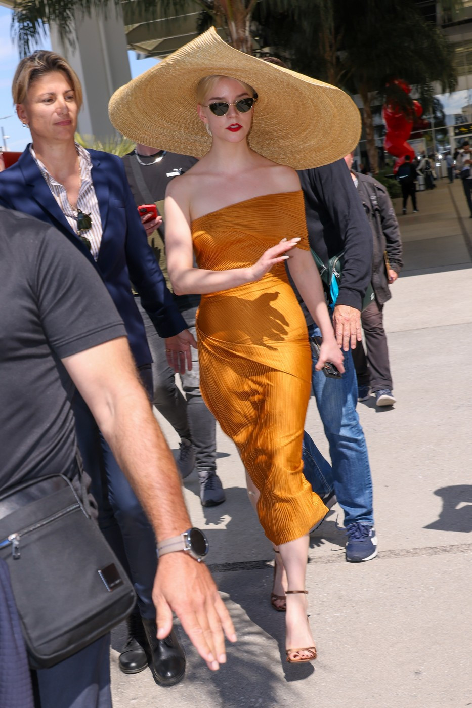 Într-un videoclip distribuit pe TikTok, Anya poate fi văzută îndreptându-se spre mașina ei într-o rochie portocalie, fără bretele, cu o crăpătură până la coapse. Actrița a purtat o pereche de sandale cu toc maro, ochelari de soare și o pălărie uriașă.