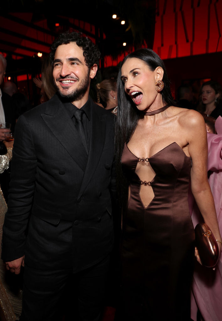 Potrivit publicației People, Demi Moore, în vârstă de 61 de ani, a fost în centrul atenției, îmbrăcată într-o rochie Versace cu nuanțe de ciocolată, cu decupaje sexy din lanțuri și un decolteu îndrăzneț în stil choker.