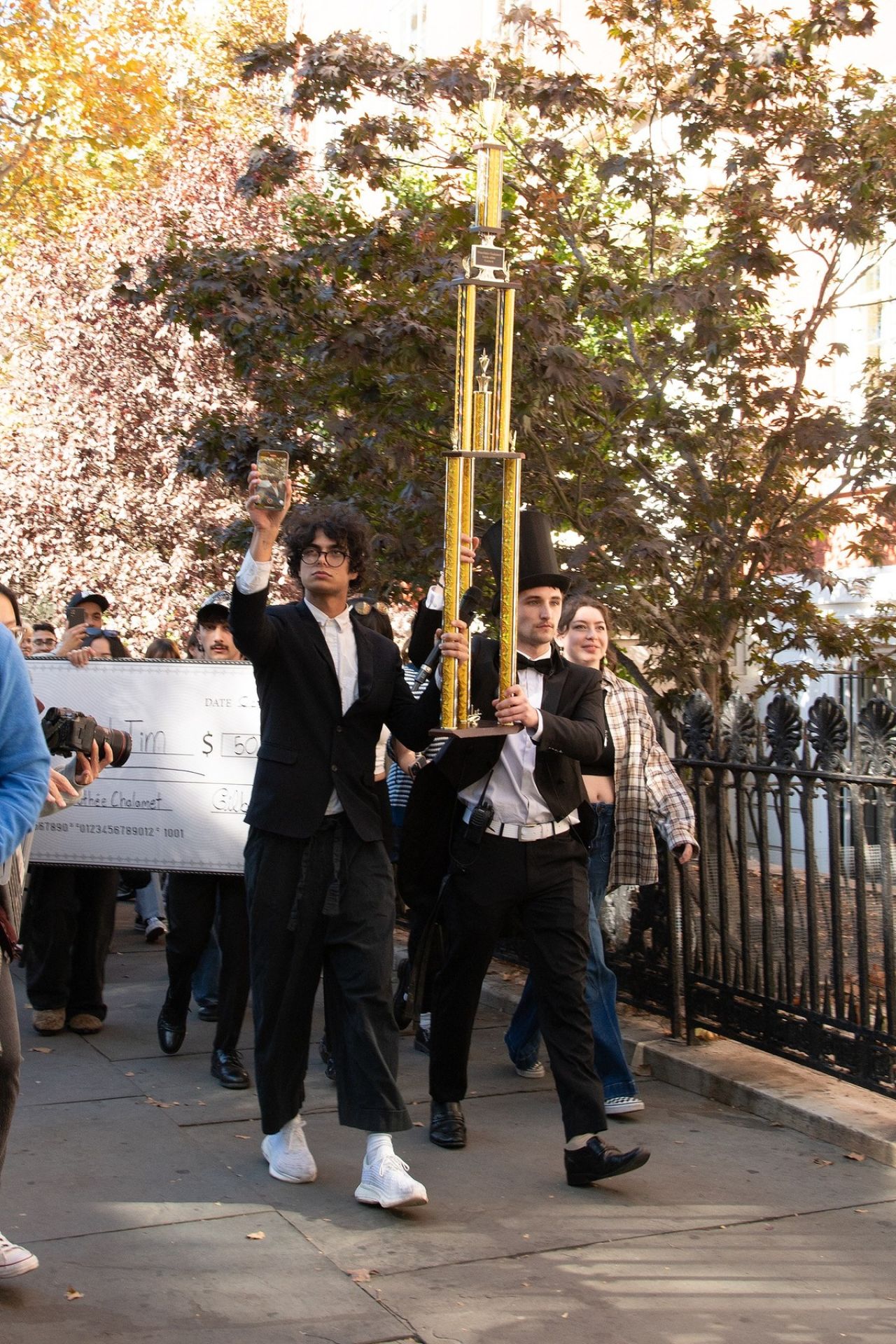 Câştigătorul, îmbrăcat în pelerina purpurie a lui Willy Wonka, a primit un trofeu auriu uriaş şi un cec în valoare de 50 de dolari, potrivit postărilor de pe reţelele sociale referitoare la eveniment.