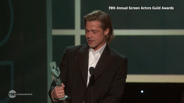 Brad Pitt, cel mai bun actor într-un rol secundar, a avut un discurs presărat cu glume.