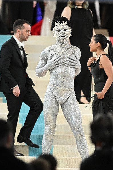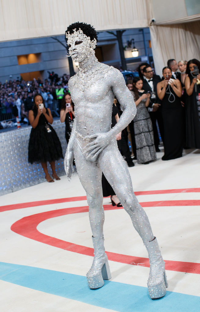 Cu siguranță, o apariție ieșită din comun a fost rapperul Lil Nas X. Acesta s-a prezentat pe covorul roșu vopsit din cap până-n picioare în argintiu, cu fața acoperită de pietre și perle.