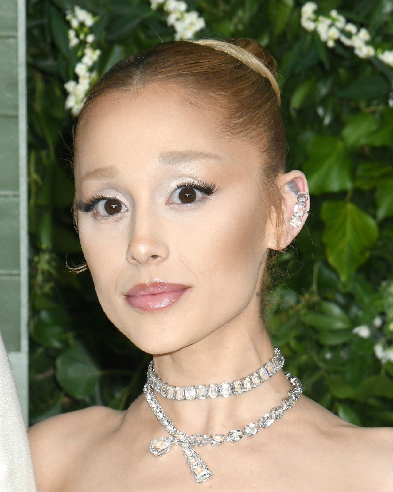 Ariana a fost îmbrăcată într-o rochie Vivienne Westwood de un alb strălucitor, cu o fustă de modă veche evazată la șolduri.