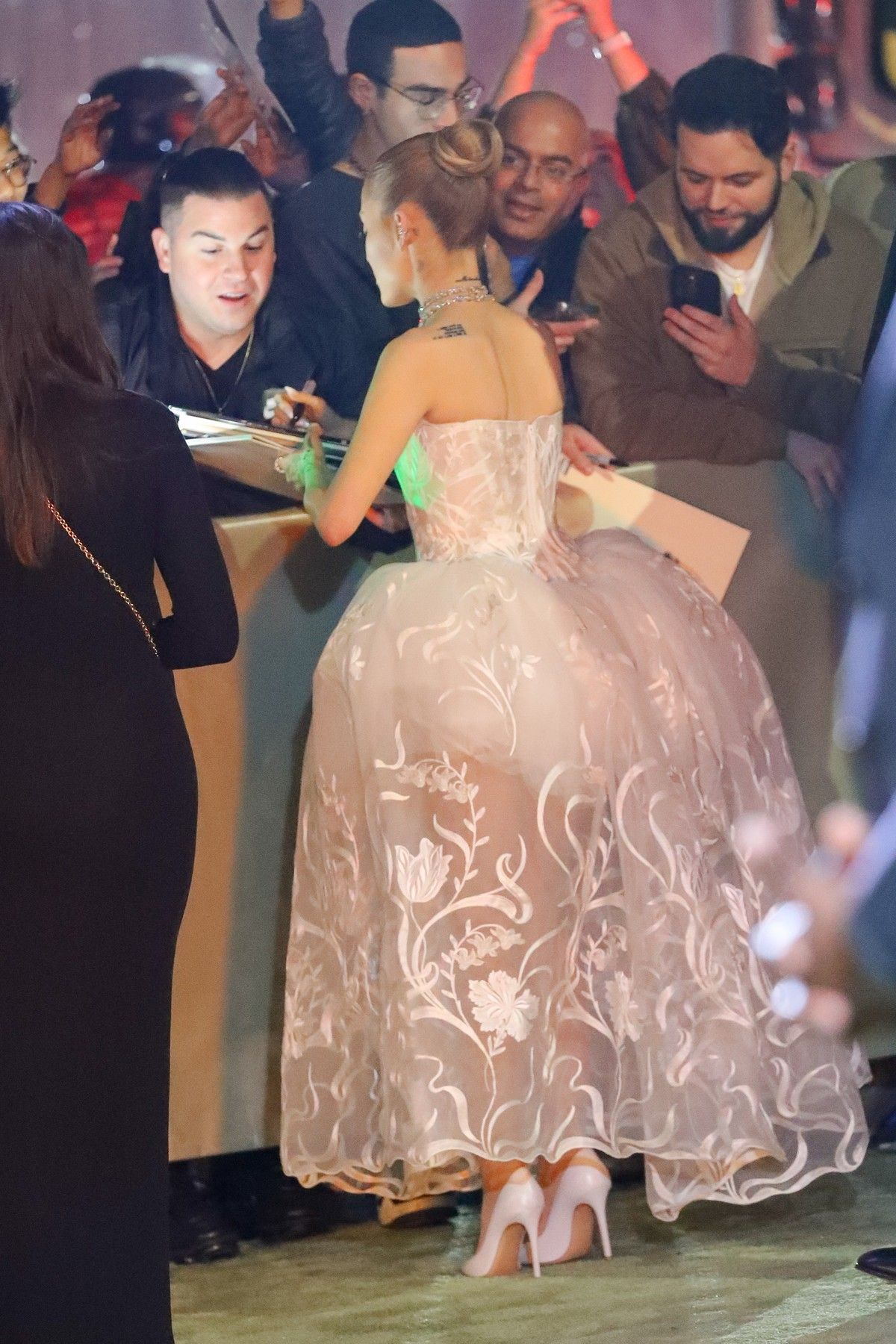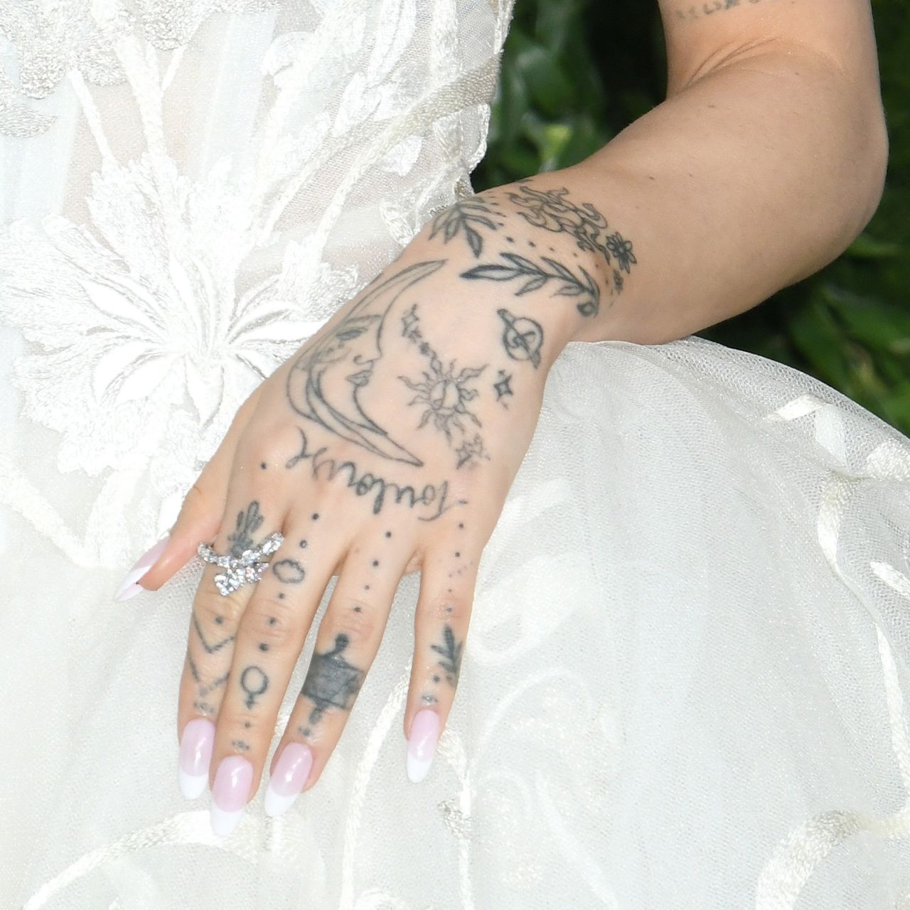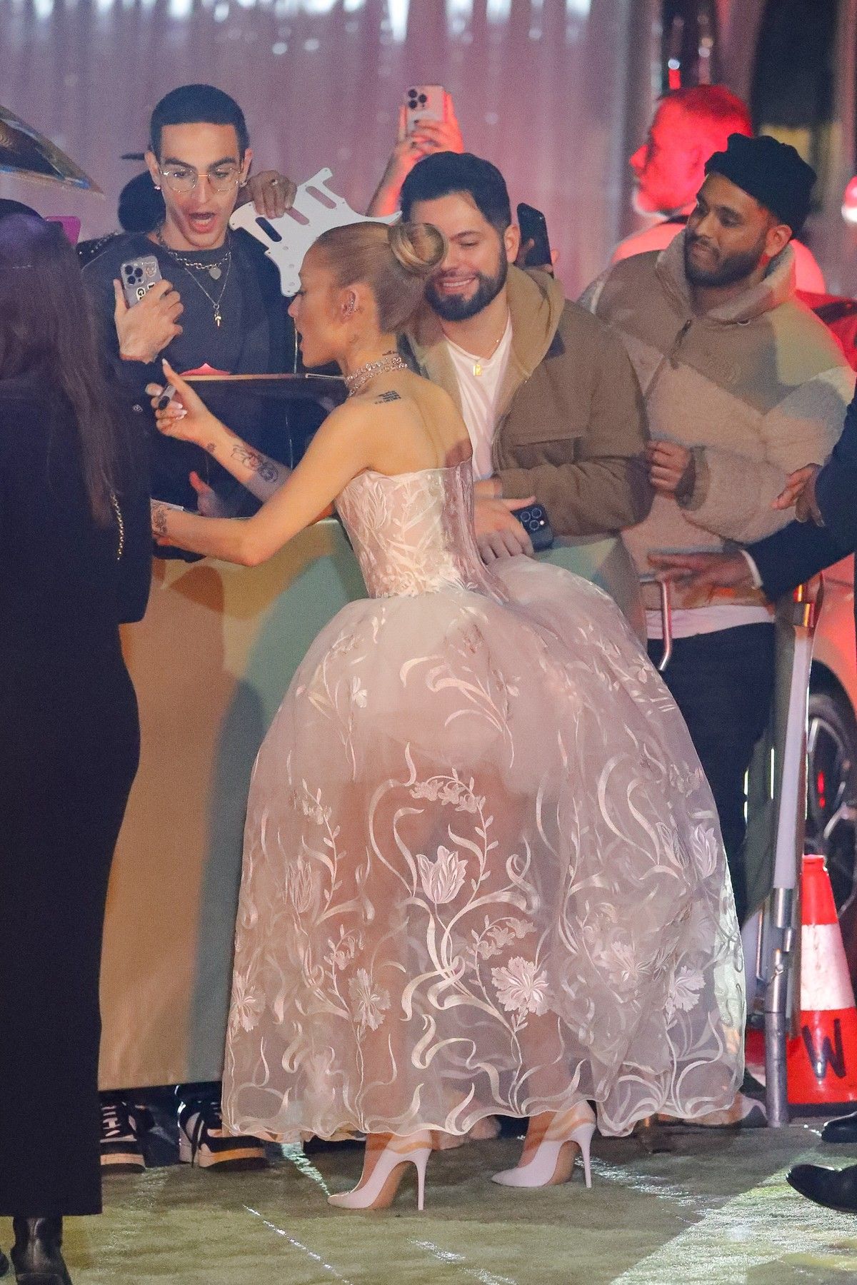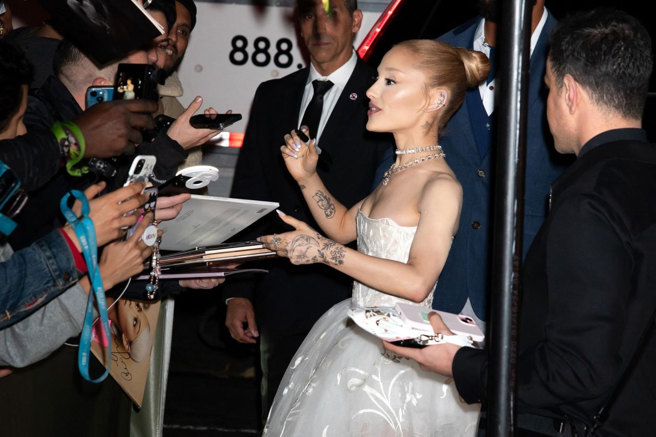 Cântăreața și actrița în vârstă de 31 de ani și-a etalat pe covorul roșu superba ținută fără bretele, precum și unele dintre numeroasele sale tatuaje, inclusiv o imagine recent tatuată a personajului său Wicked pe dosul mâinii, potrivit Daily Mail.