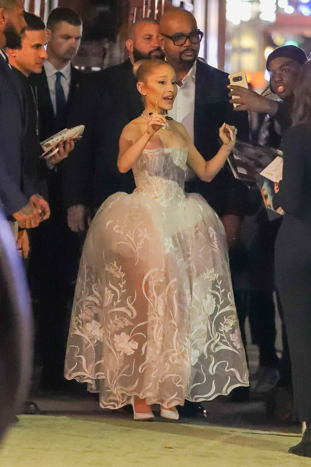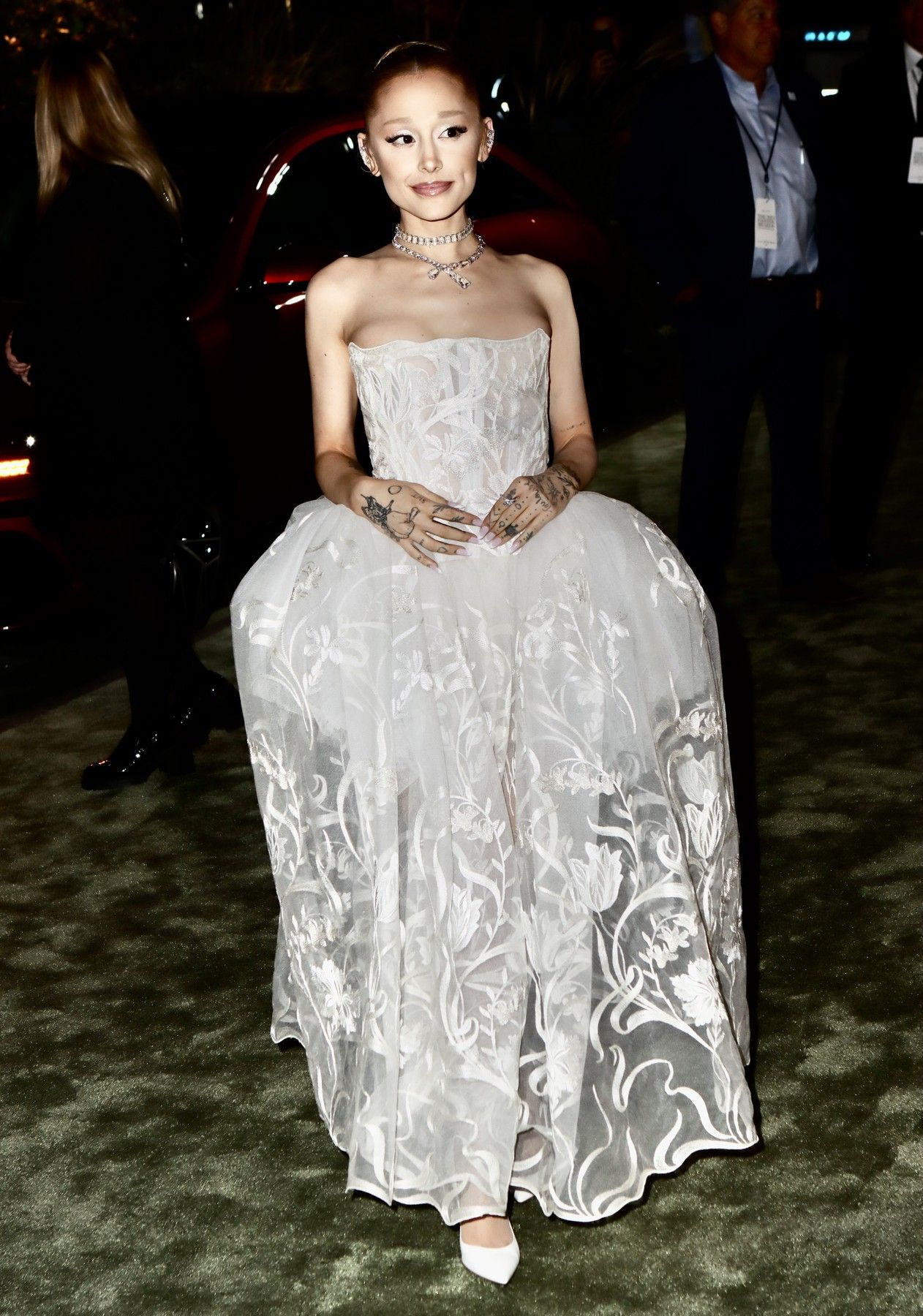 Ariana Grande părea că se întoarce în personajul Glinda vrăjitoarea cea bună când a sosit într-o rochie albă opulentă în cadrul evenimentului Innovator Awards.