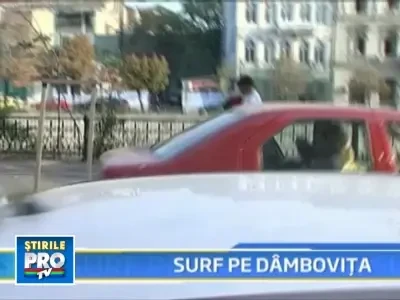 Asa a pacalit traficul! Wakeboarding in centrul Capitalei, pe Dambovita!