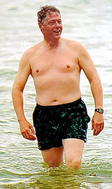Si alti presedinti au fost surprinsi la bustul gol: Bill Clinton, iesind din ocean, tot in Hawaii, dar si Vladimir Putin, la vanatoare, in Siberia.