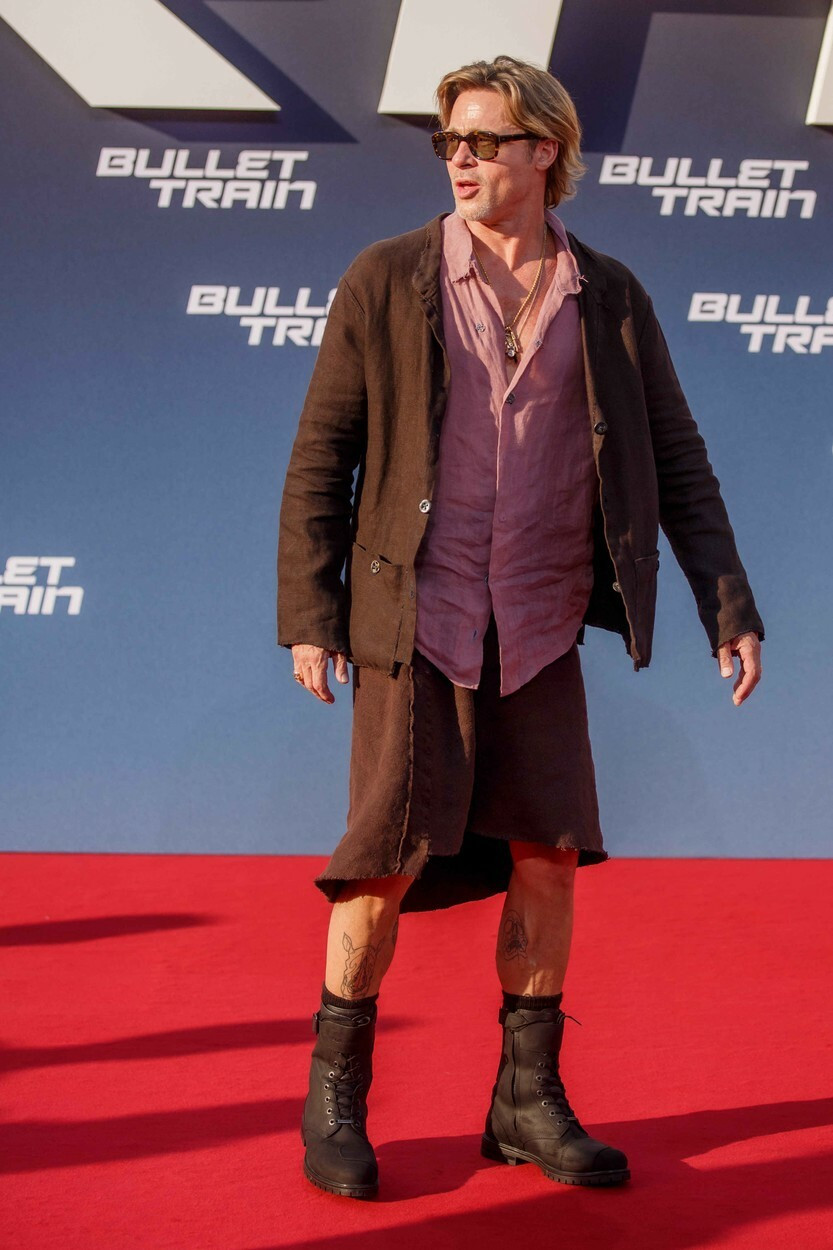 Brad Pitt nu este totuși la prima apariție în fustă, întrucât și-a arătat picioarele și în filmul „Troia”, din 2004.
