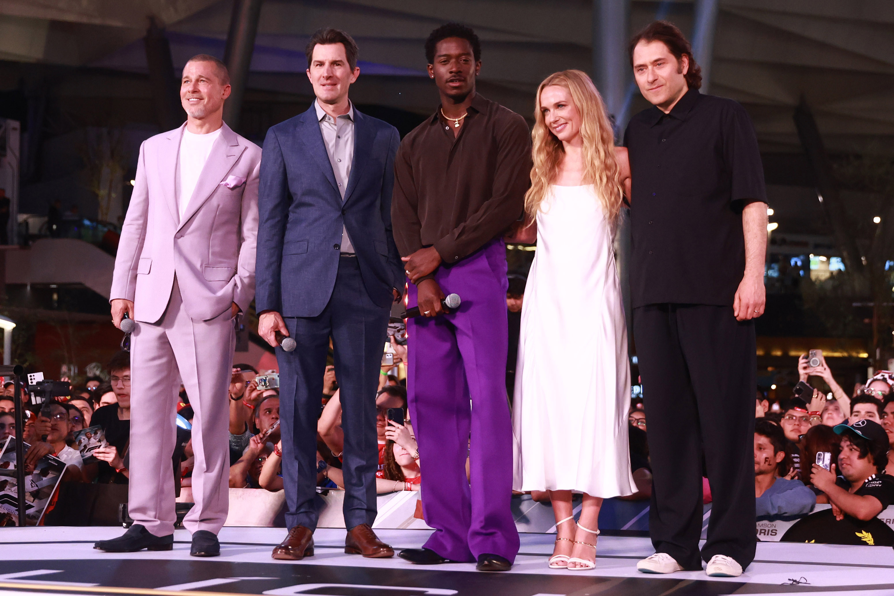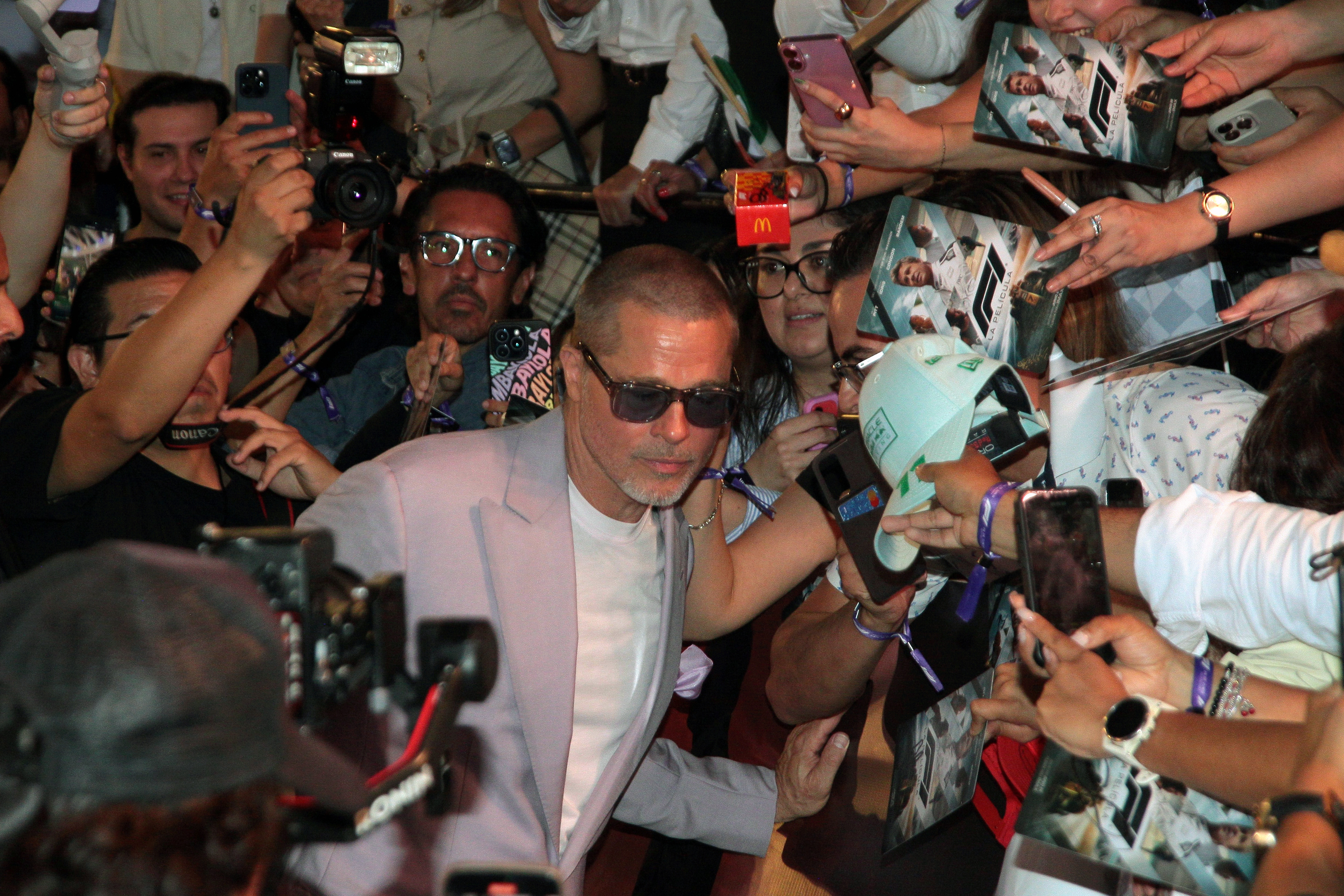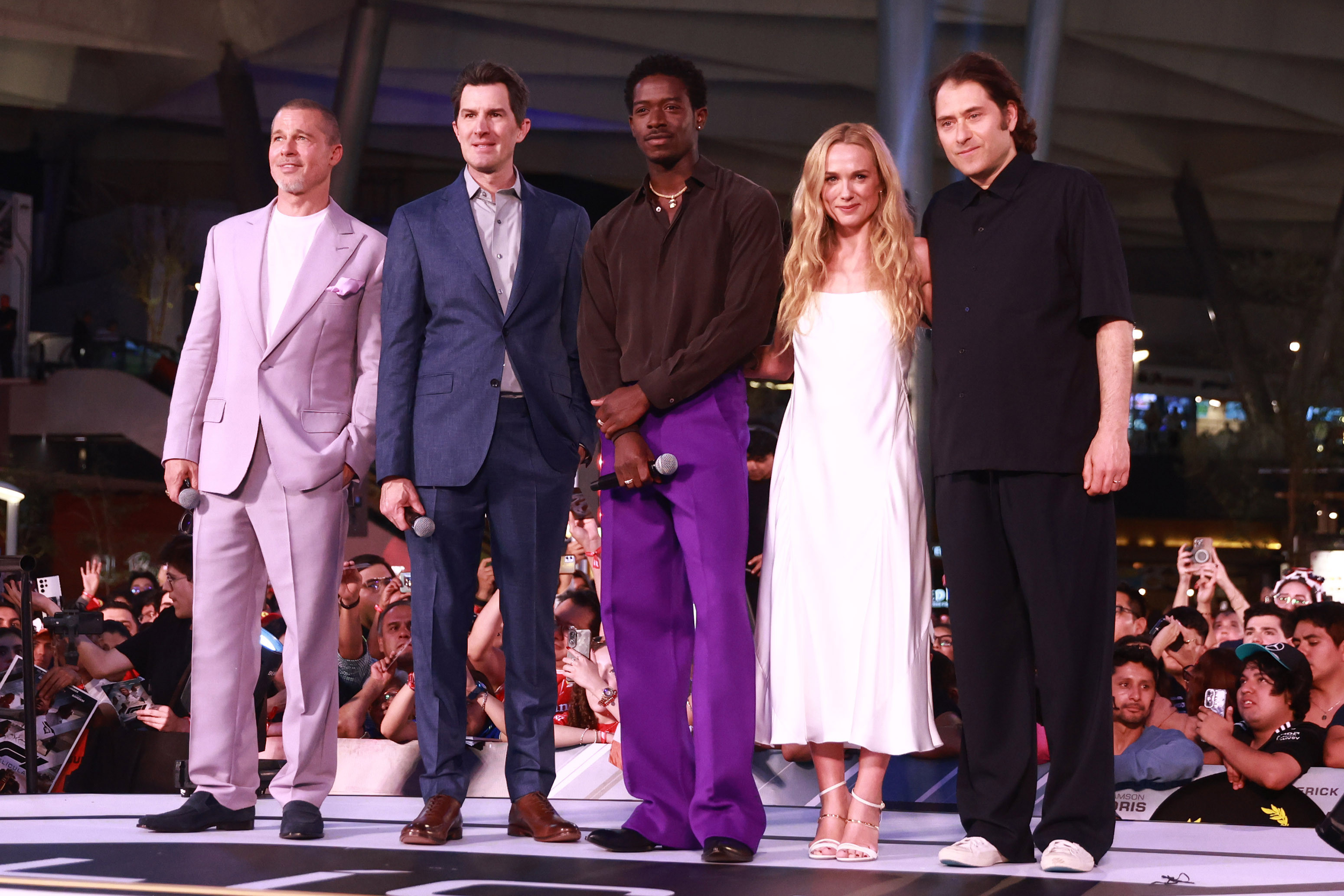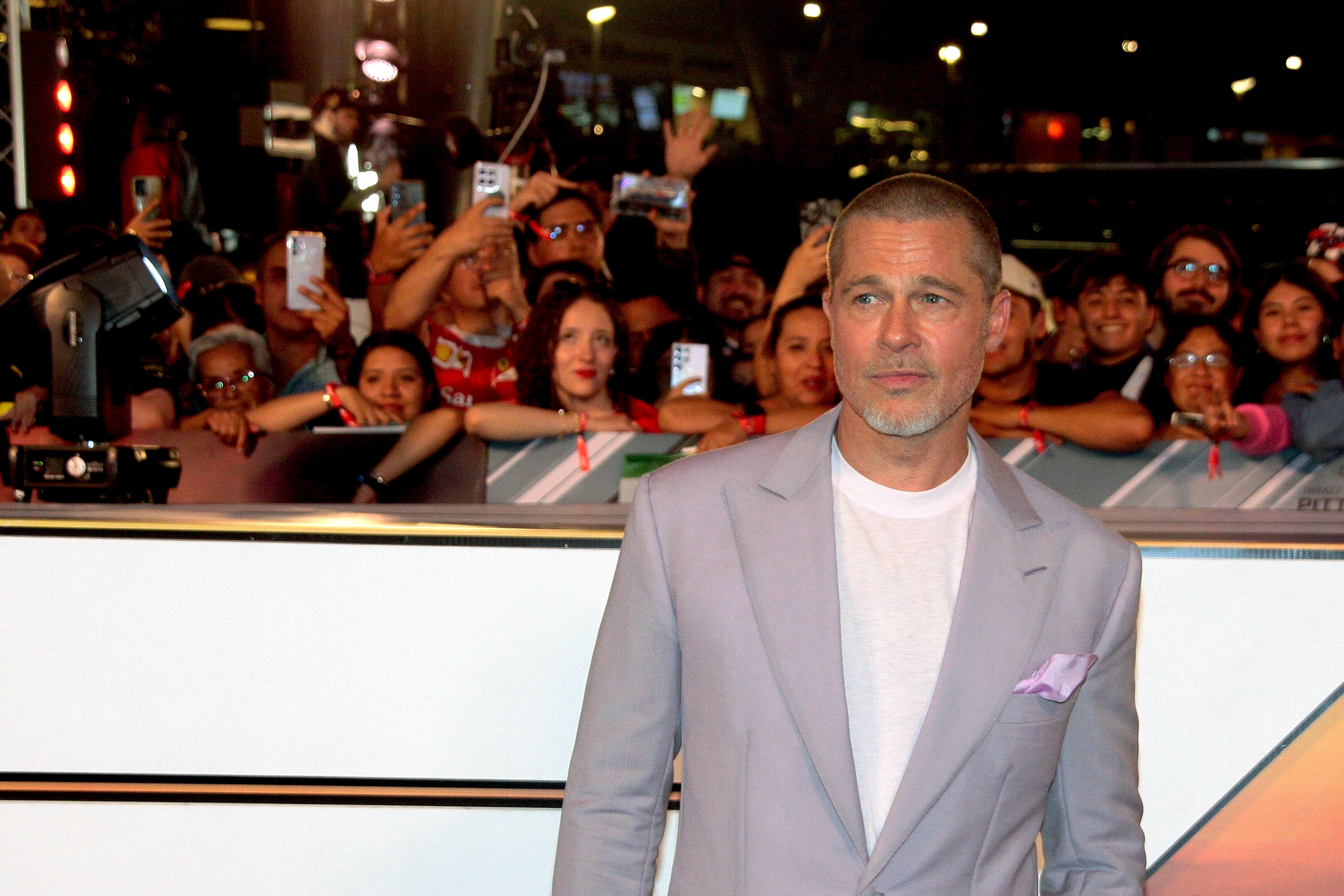 Mai târziu în cursul zilei, Pitt s-a alăturat distribuției filmului „F1”, printre care Damson Idris și Kerry Condon, pentru un eveniment cu fanii la Plaza Toreo Parque Central din Naucalpan de Juarez.