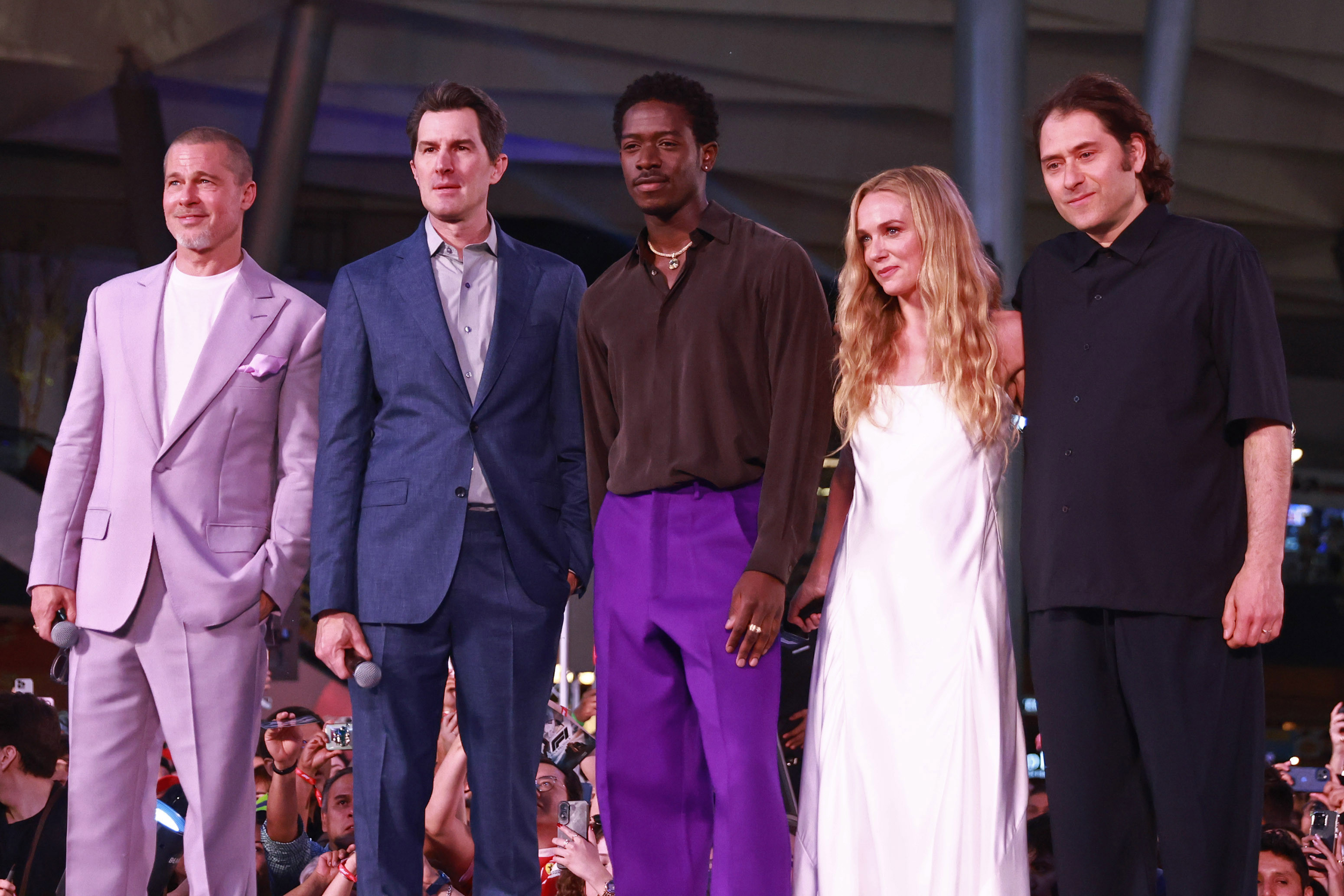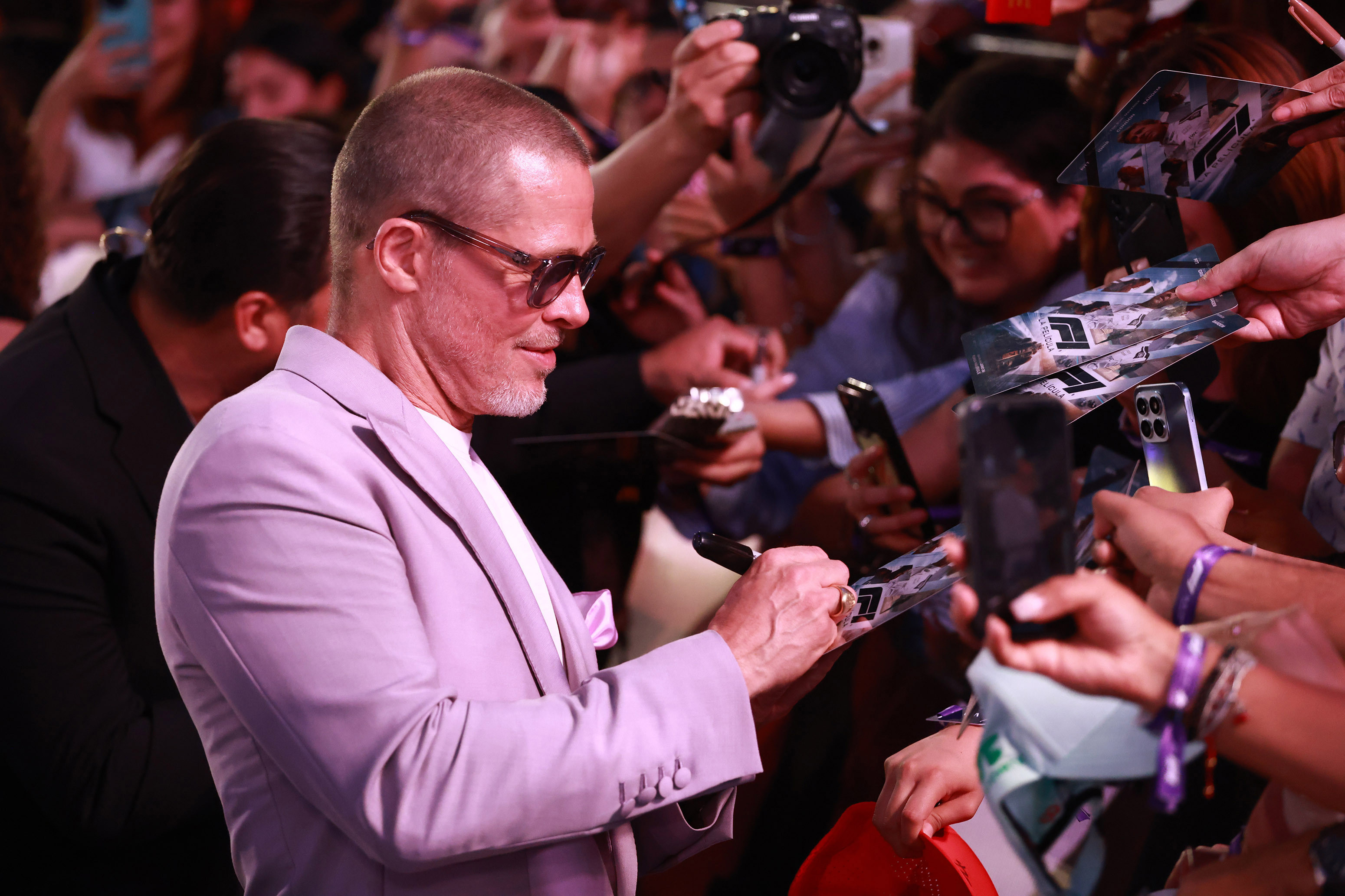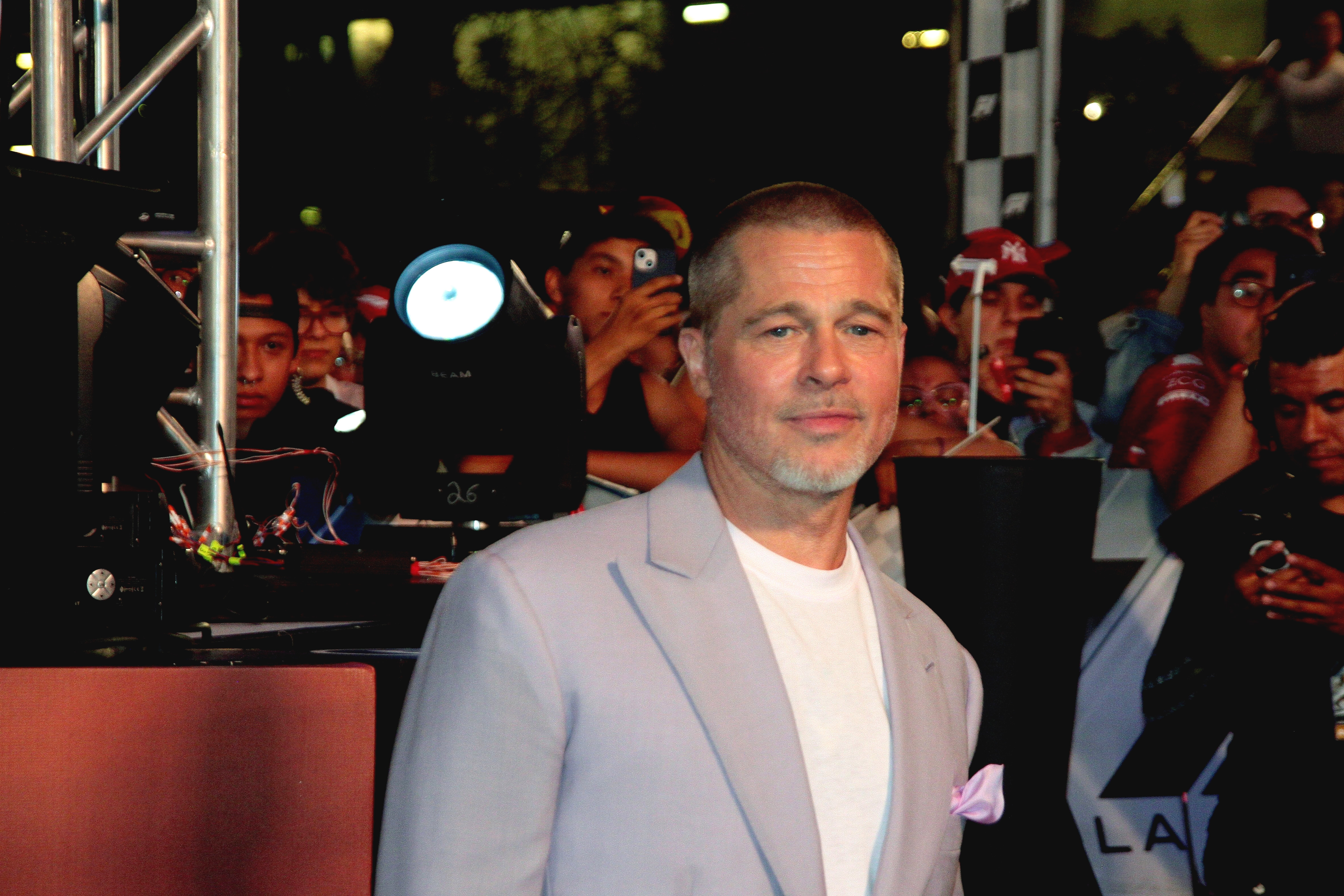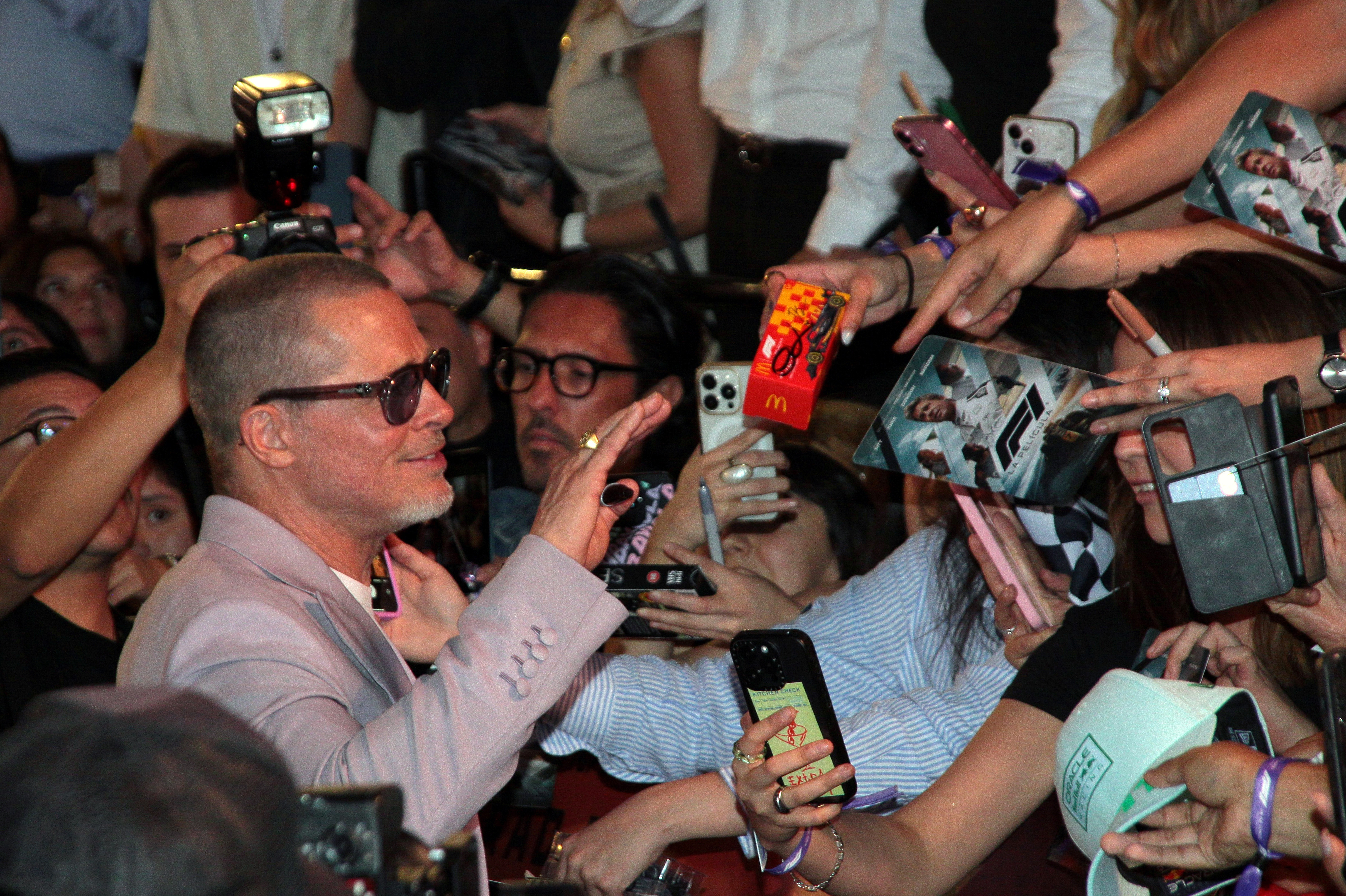 Mai târziu în cursul zilei, Pitt s-a alăturat distribuției filmului „F1”, printre care Damson Idris și Kerry Condon, pentru un eveniment cu fanii la Plaza Toreo Parque Central din Naucalpan de Juarez.
