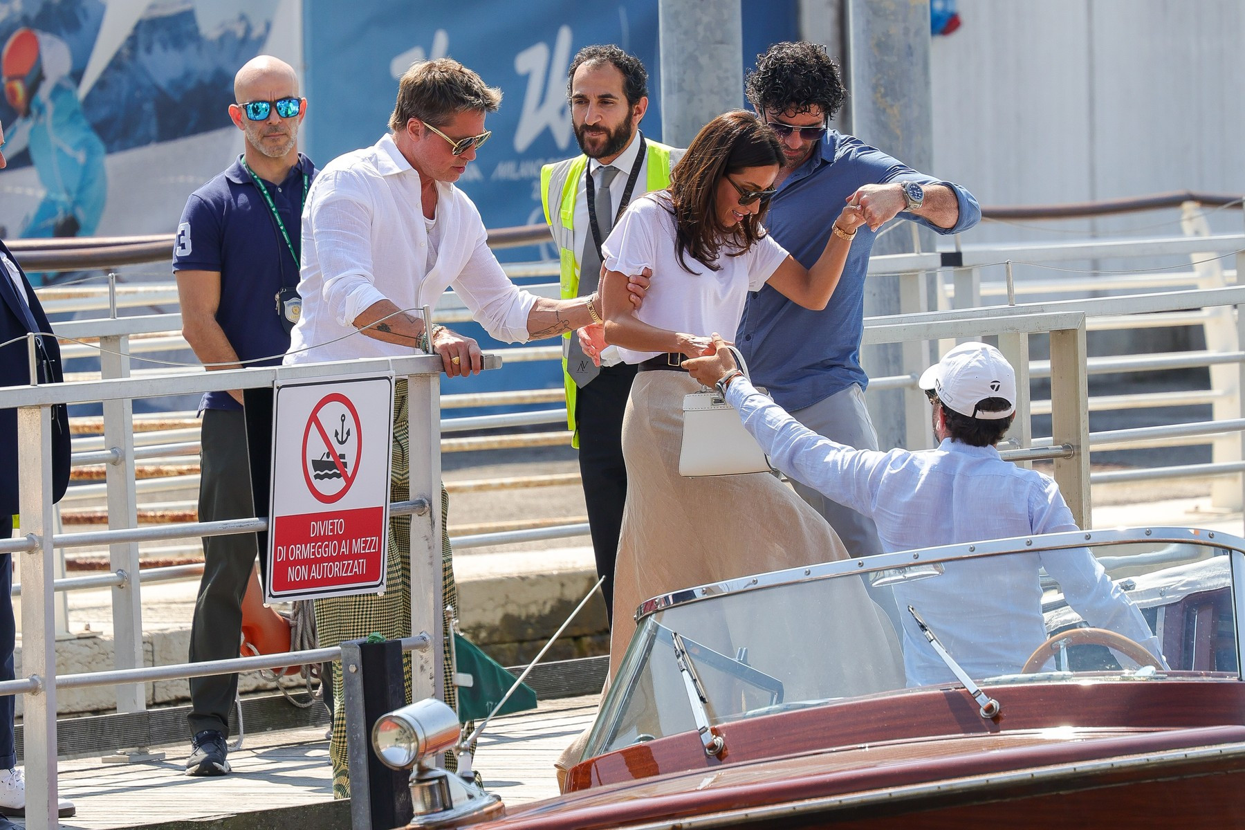 Brad Pitt, apariție alături de Ines de Ramon la Veneția, înainte de Festivalul de Film. Cum au fost văzuți. GALERIE FOTO