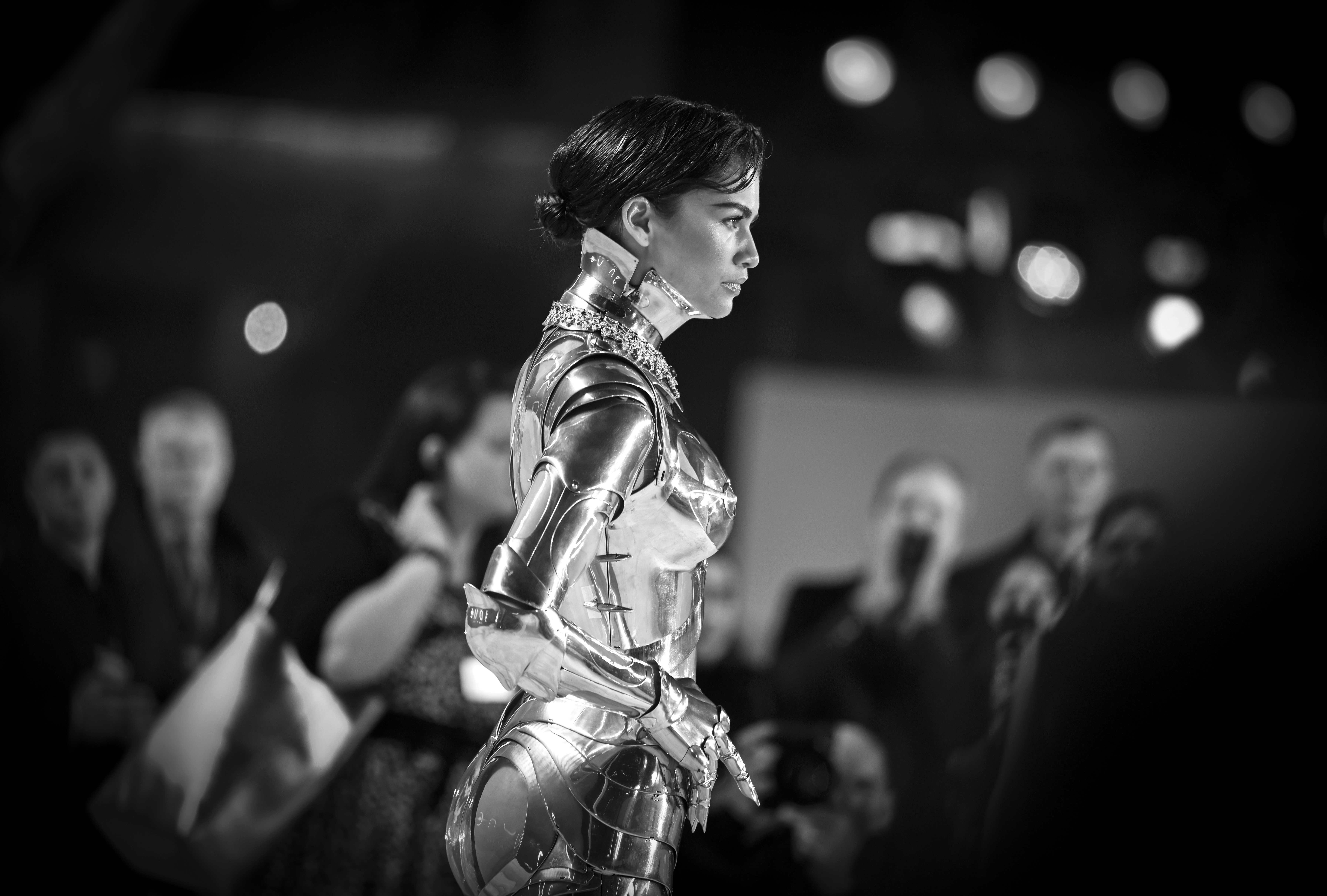 Zendaya și Roach au ales să îmbrace costume robotice semnate Thierry Mugler din colecția de modă Thierry Mugler pentru toamna-iarna 1995. De asemenea, la premieră, Florence Pugh a optat pentru o rochie neagră strălucitoare cu glugă de la Valentino, în timp ce Lea Seydoux și Rebecca Ferguson au intrat și ele în acest spirit, cu ținute regale, din alte lumi, de la Louis Vuitton și, respectiv, Fendi, scrie CNN.