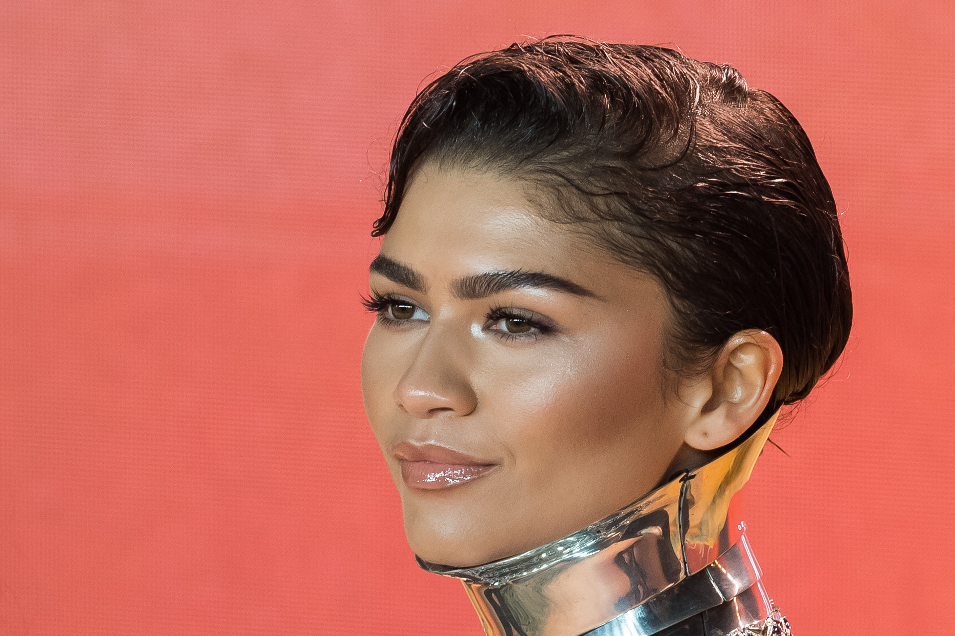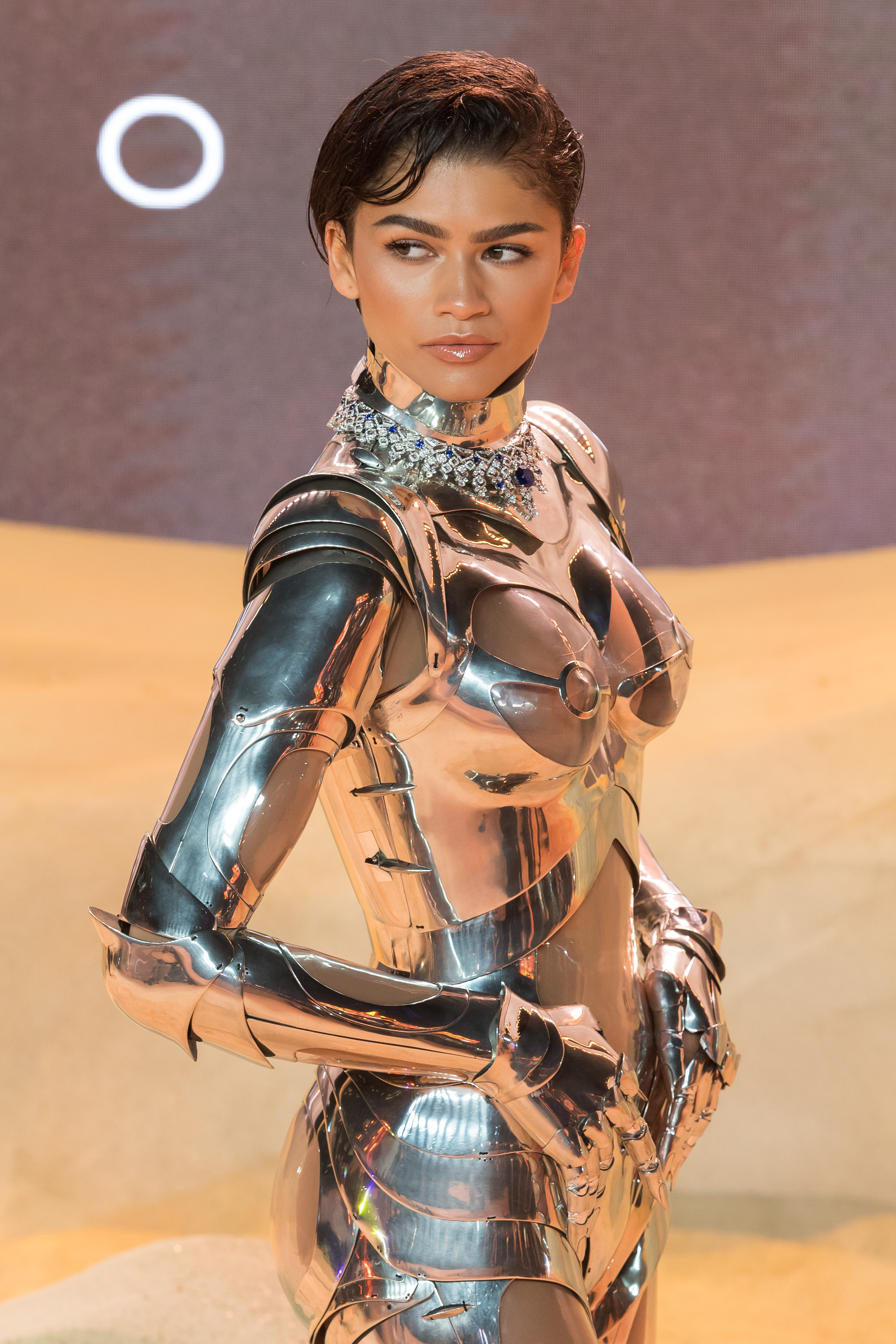 După ce și-a făcut o intrare îndrăzneață pe covorul de nisip, Zendaya a optat pentru o rochie Mugler modernă, mult mai simplă.