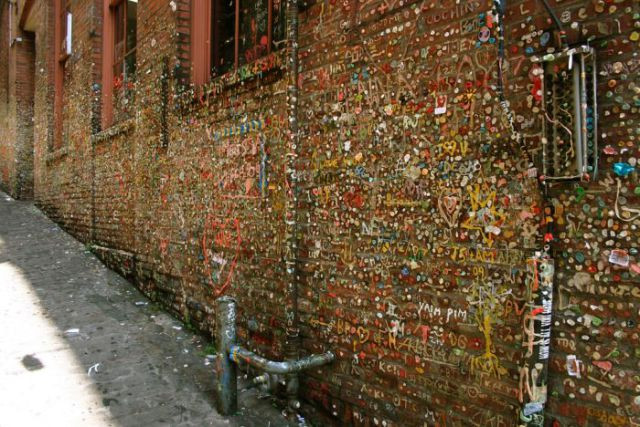 Chiar daca autoritatile locale au incercat sa ia masuri pentru indepartarea gumelor de mestecat, cetatenii au continuat cu inversunare sa le lipeasca acolo, rezultatul fiind un zid de guma!