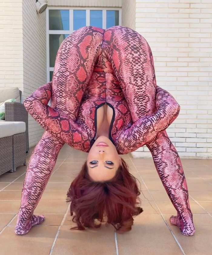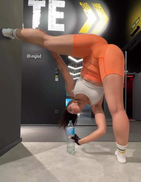 Influencerița își arată adesea abilitățile flexibile în public.