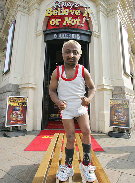 Aditya "Romeo" Dev, un indian de 21 de ani, este considerat cel mai mic culturist din lume, avand in vedere faptul ca masoara doar 83 de centimetri si cantareste 9 kilograme, adica exact dimensiunile unui copil de 1 an.