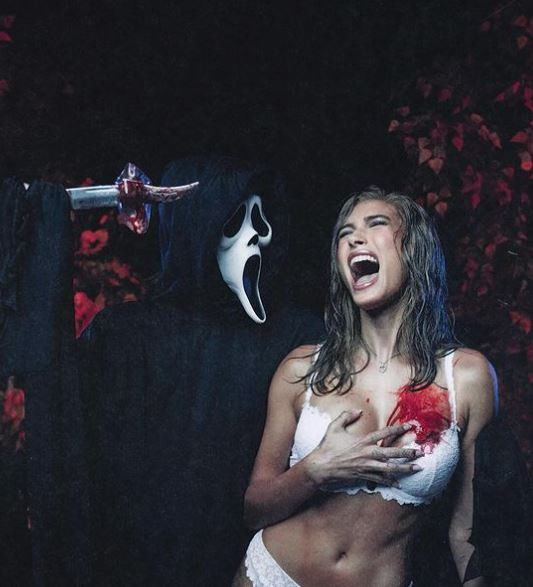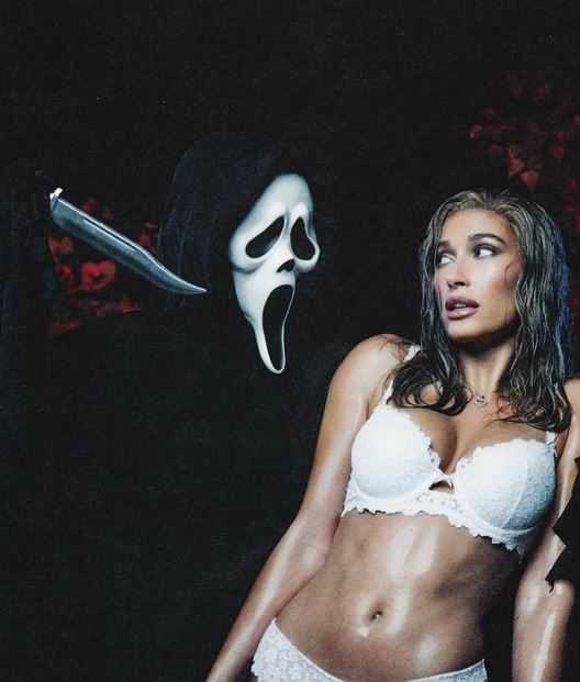 Hailey Bieber s-a dezbrăcat și a pozat în pielea lui Carmen Electra din „Scary Movie". Vedeta a reușit să întruchipeze momentele „înainte” și „după” înjunghiere.