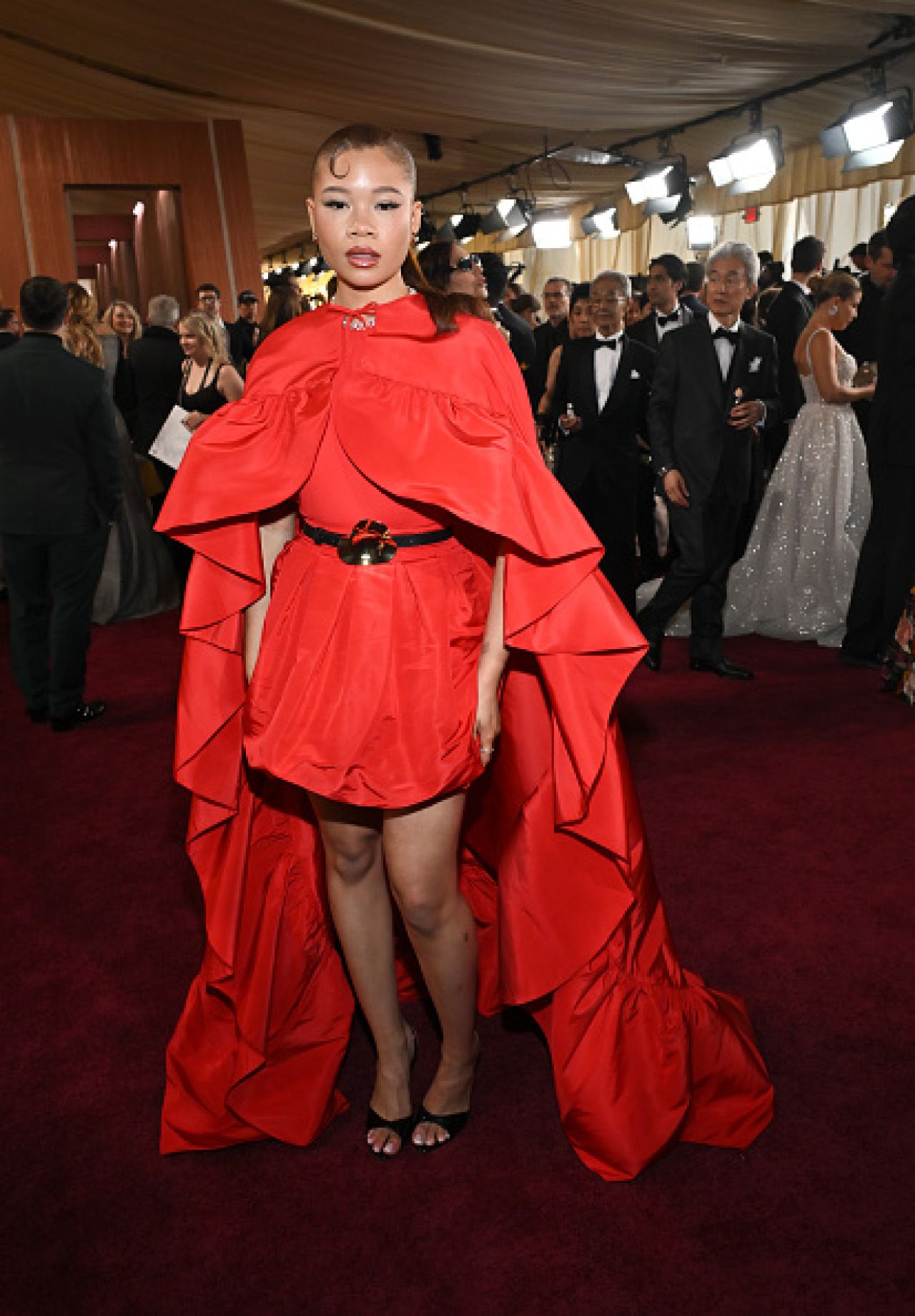 Cunoscută pentru rolul din „Euphoria”, Reid a atras atenția într-o rochie mini roșie Alexandre Vauthier, accesorizată cu o capă asortată și o centură aurie. Din păcate, look-ul a semănat mai mult cu un costum sofisticat de „Scufița Roșie” decât cu o ținută demnă de Oscaruri.