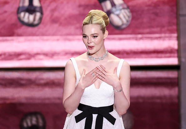 Fanning, care a interpretat-o pe iubita lui Bob Dylan, Suze Rotolo, în „A Complete Unknown”, este o prezență constant elegantă, dar ținuta ei de la Oscaruri a fost sub așteptări. Rochia albă, fără mâneci, creată de Givenchy, avea o fustă amplă din dantelă, o centură neagră cu fundă și un decolteu adânc în formă de inimă. Colierul ei Cartier a fost spectaculos și plin de strălucire, dar a ieșit mai mult în evidență decât restul ținutei.