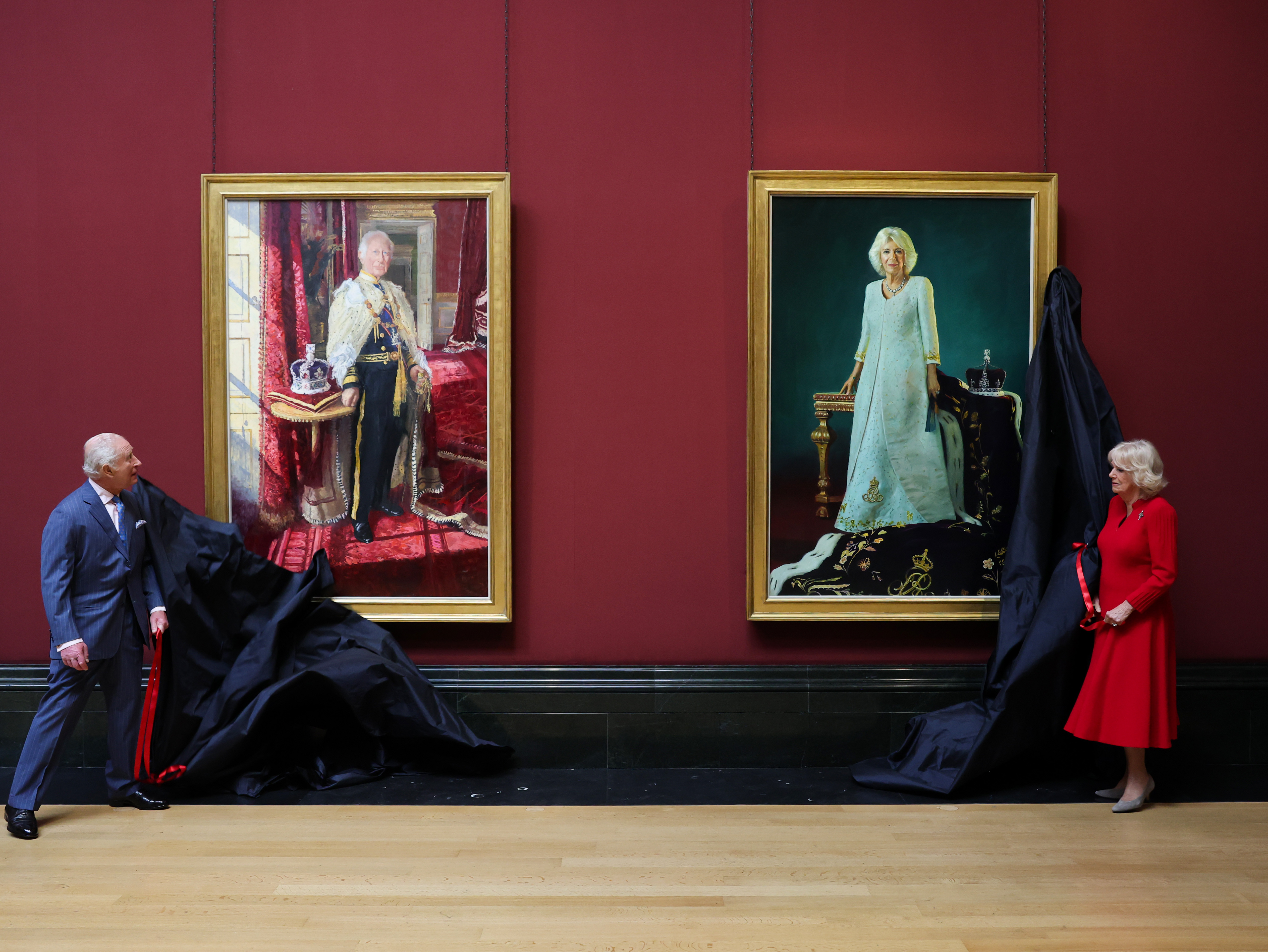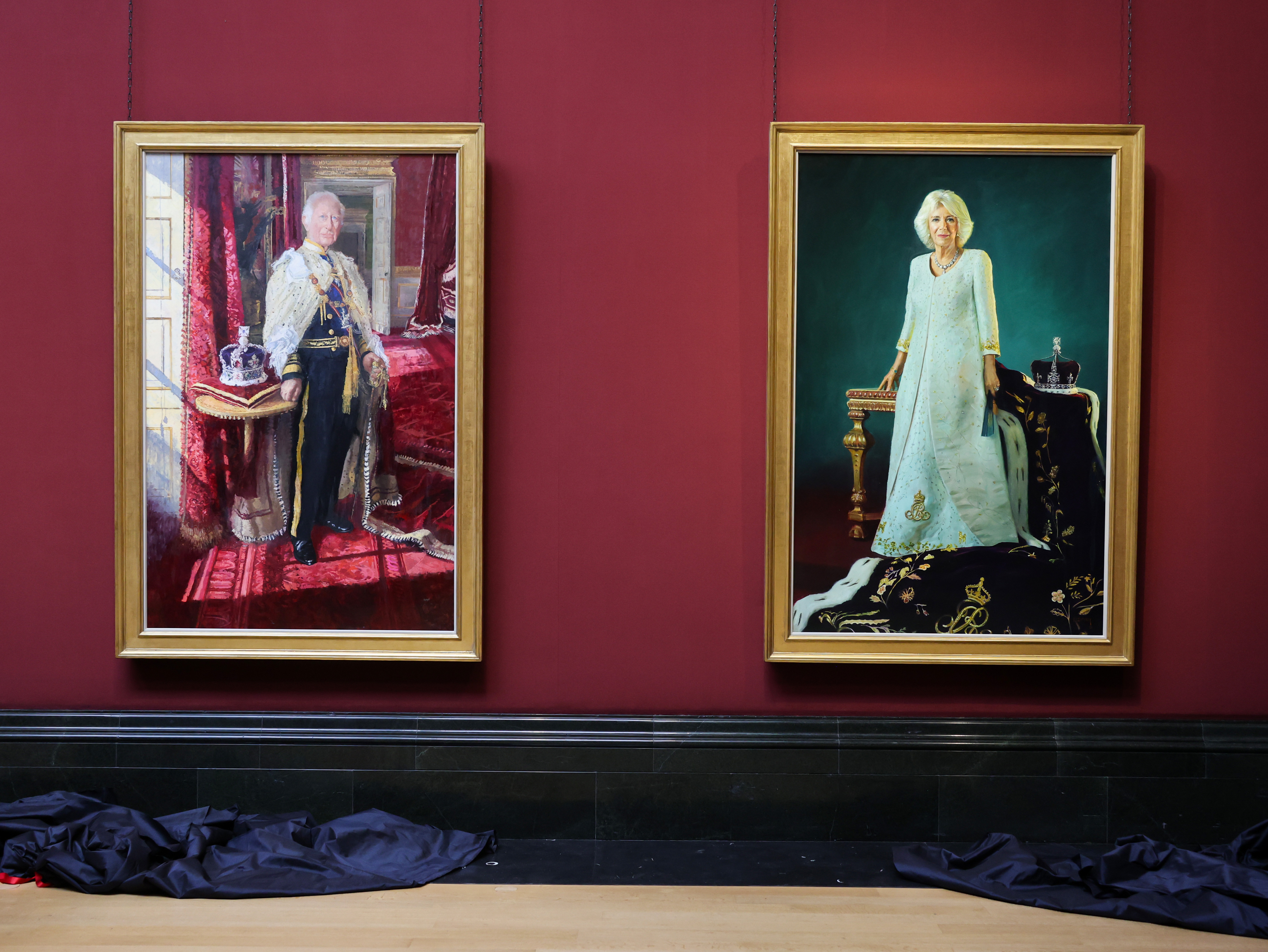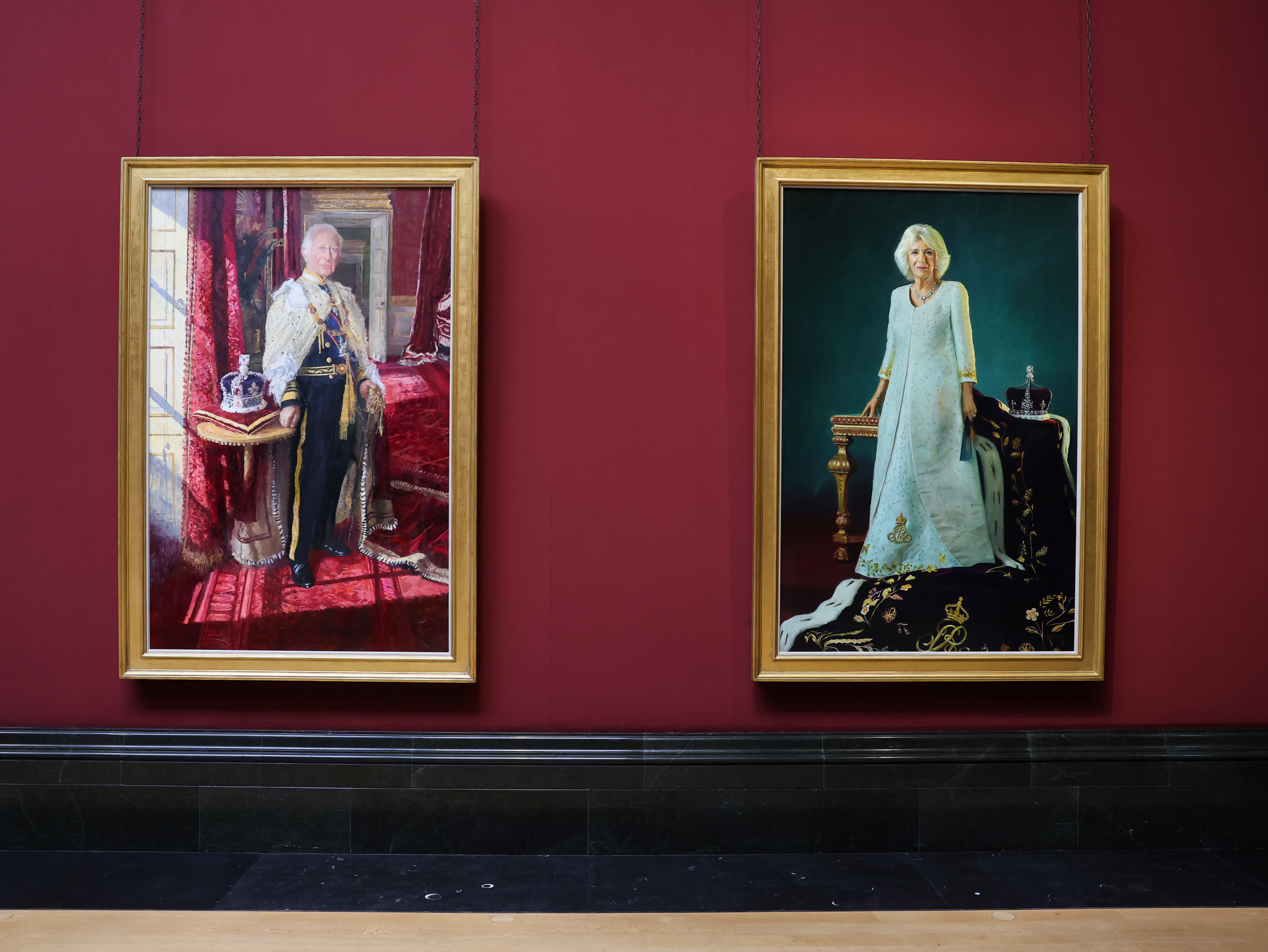 „Pentru a marca cea de-a doua aniversare a încoronării Majestăţilor lor, două portrete de stat ale regelui Charles al III-lea şi ale reginei Camilla au fost dezvelite în holul central al Galeriei Naţionale", se arată pe site-ul oficial al Familiei Regale.