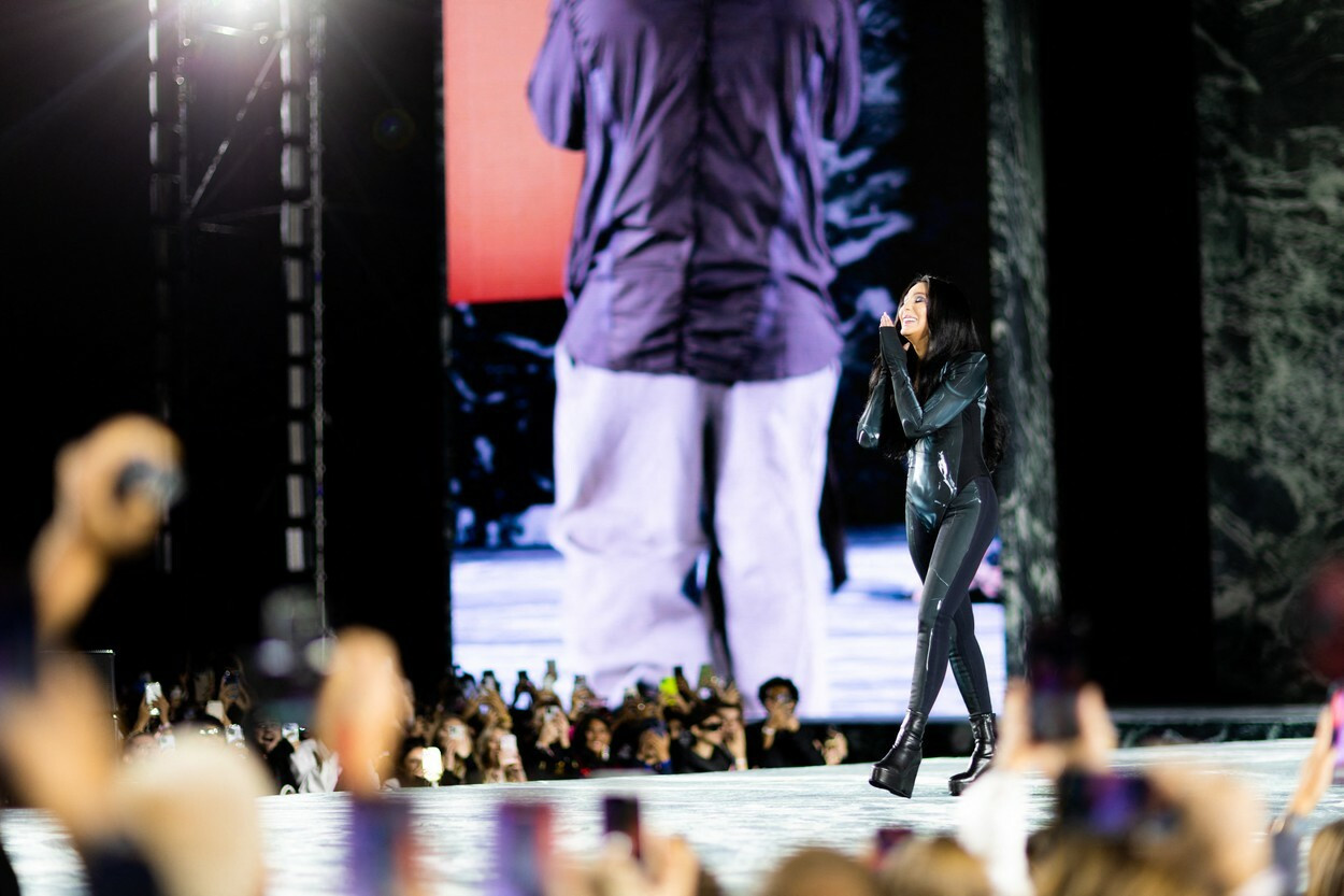 Potrivit videoclipurilor publicate pe reţelele de socializare, prezentarea a avut loc pe stadionul Jean-Bouin, pe melodia disco a artistei, din 1998, „Strong Enough”.