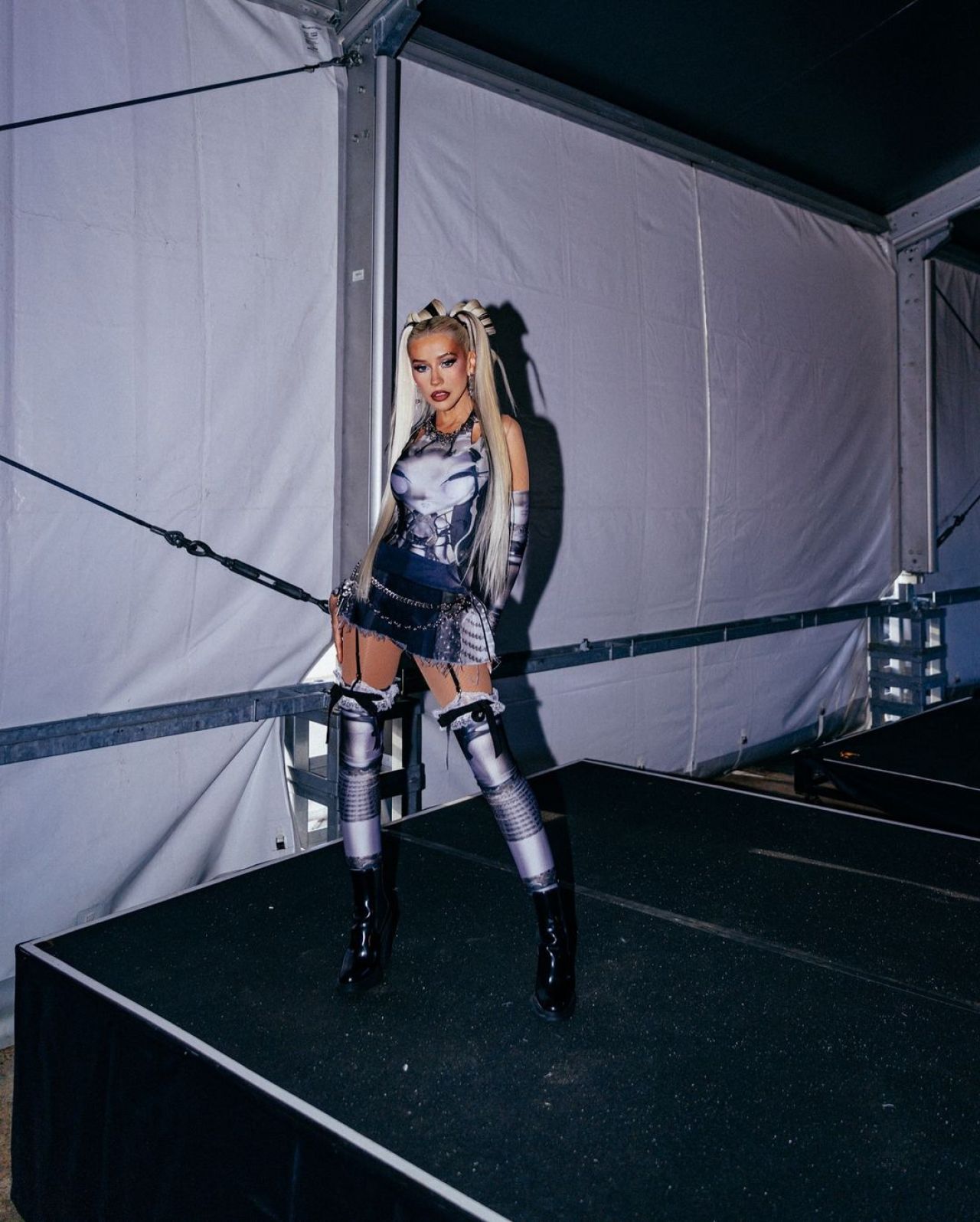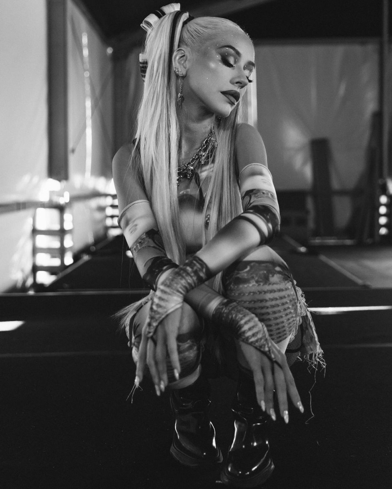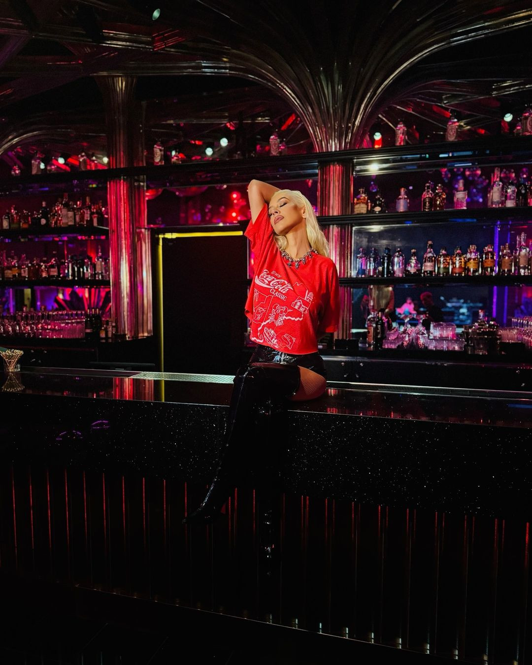 Ulterior, Christina, care purta un body negru strâmt și cizme de piele negre până la coapsă, a postat pe pagina sa de Instagram clipuri cu ea în timp ce ținea un shake, produs pe care îl promovează, în sala de sport.